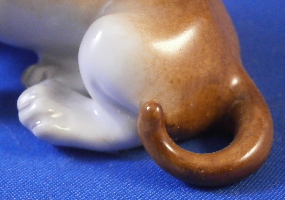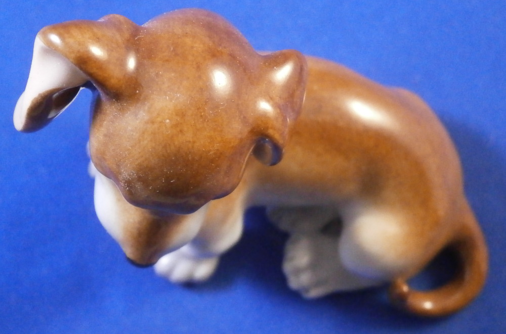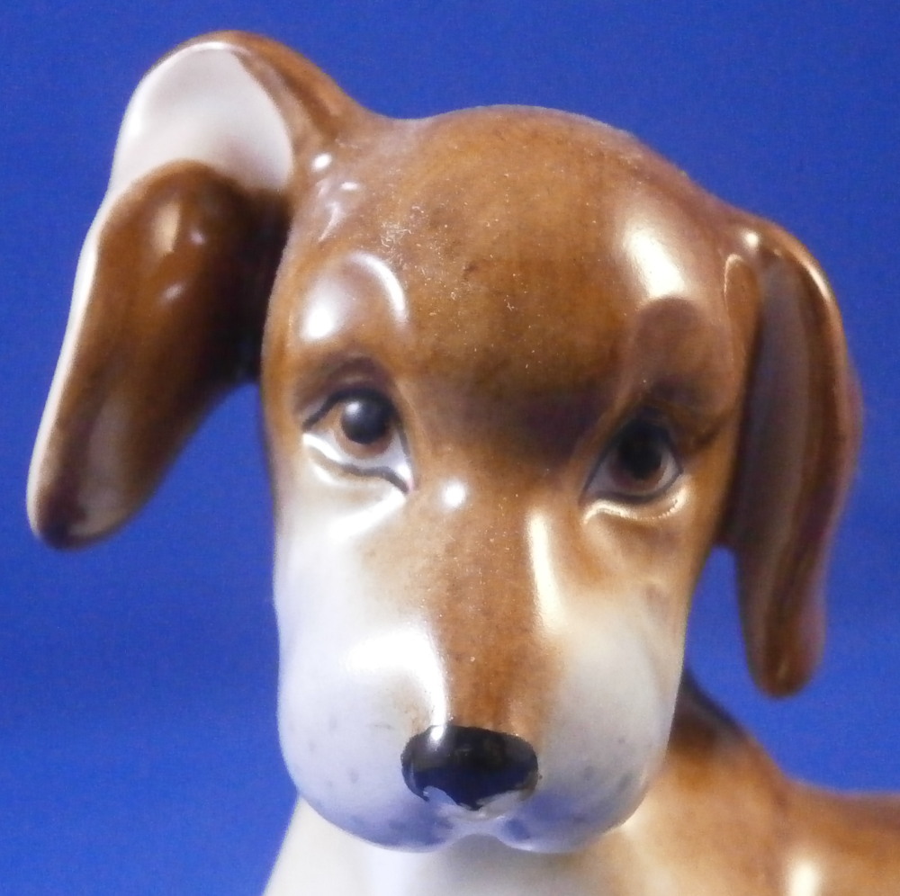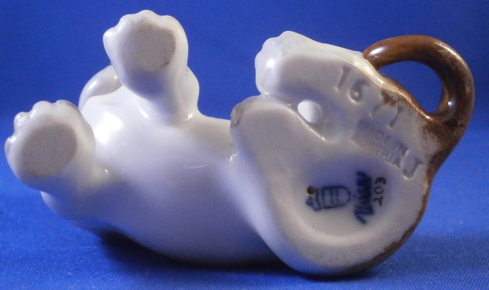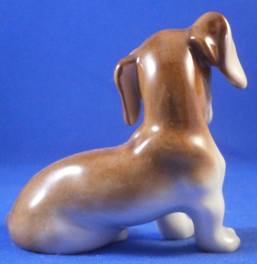This is a figurine of a young / puppy Dachshund dog made by Augarten in the mid 20th century. Nicely modeled to look super cute and hand painted to perfection! He is 2.5 inches tall, 2.75 inches long and 1.5 inches wide. The little dog is in perfect condition. Marked underneath with the blue shield with the crown on top as well as the word Wien underneath, a black number 203., impressed numbers 1671, the letter J, as well as impressed Made in Austria Austria as shown. Please email me for more information or photos.