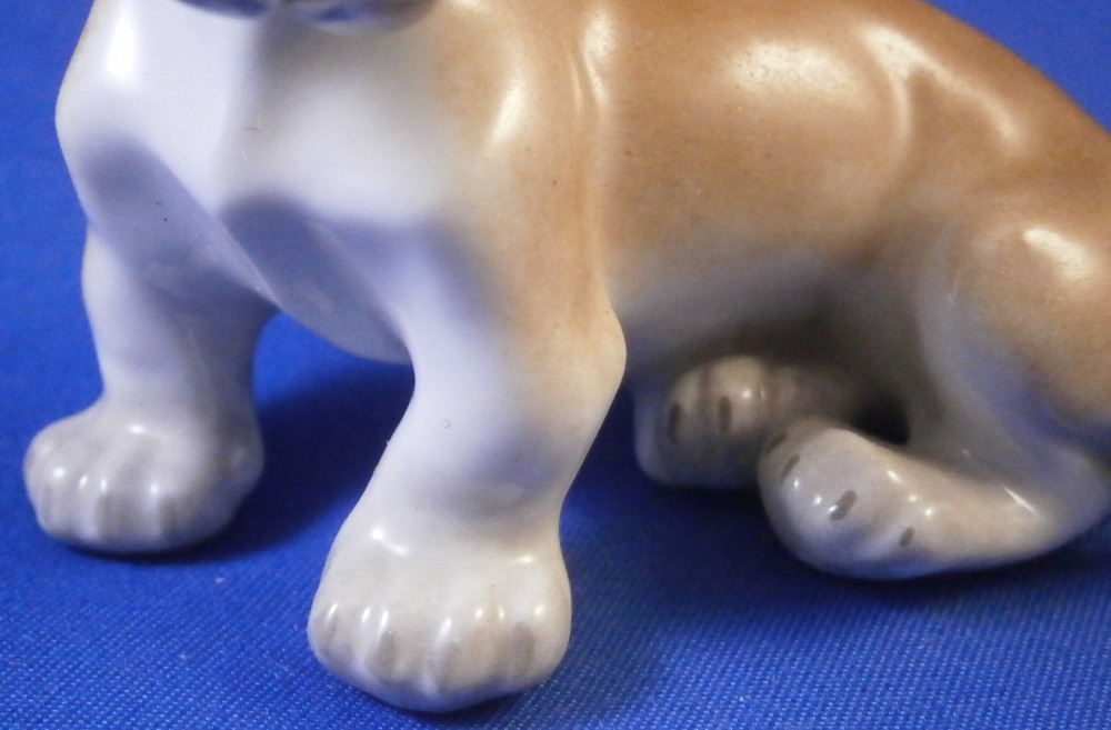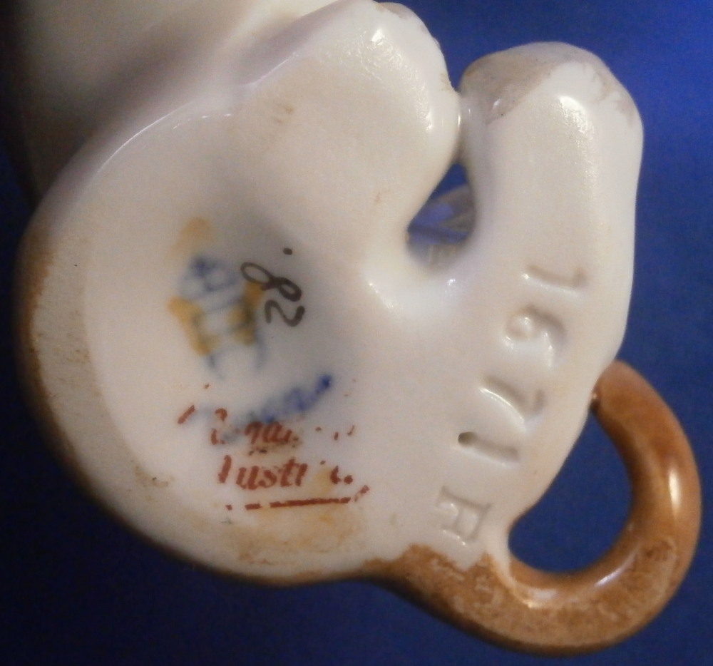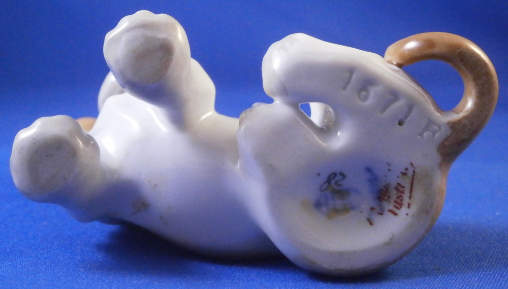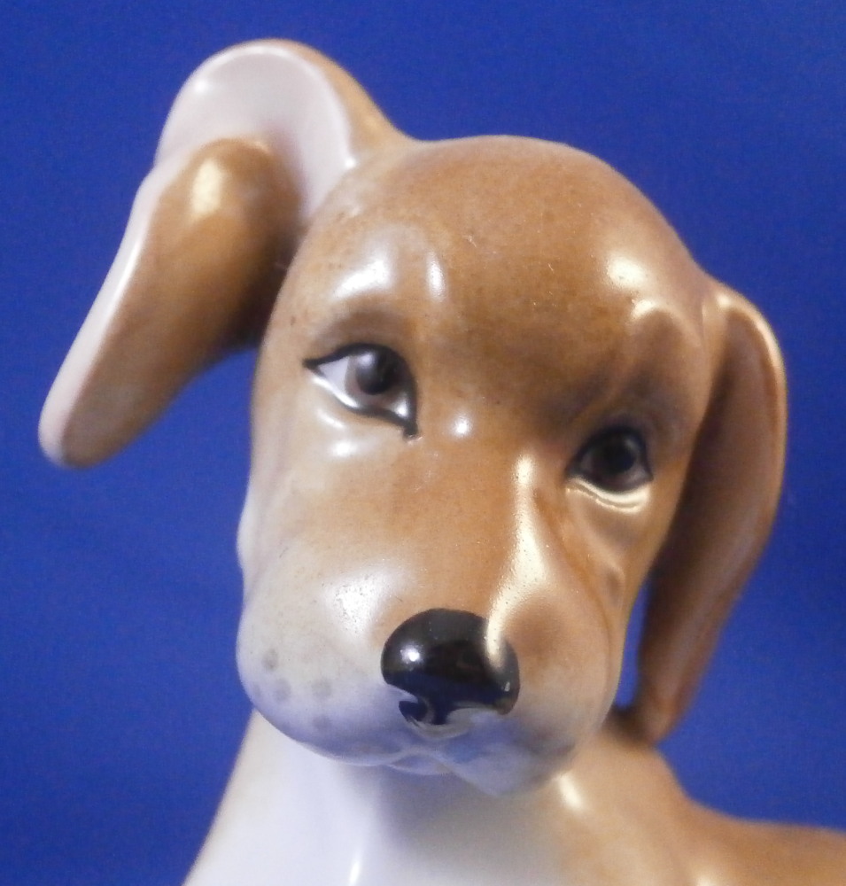 This is a figurine of a young / puppy Dachshund dog made by Augarten during the original period in the 1920's. Nicely modeled to look super cute and hand painted to perfection! He is 2.5 inches tall, 2.875 inches long and 1.5 inches wide. The little dog is in perfect condition. Marked underneath with the blue shield with the crown on top as well as the word Wien underneath, a black number 28., impressed numbers 1671, the letter F, as well as Augarten Austria in a red rectangle which has worn off mostly but is still visible enough to know it's from the original period. Please email me for more information or photos.