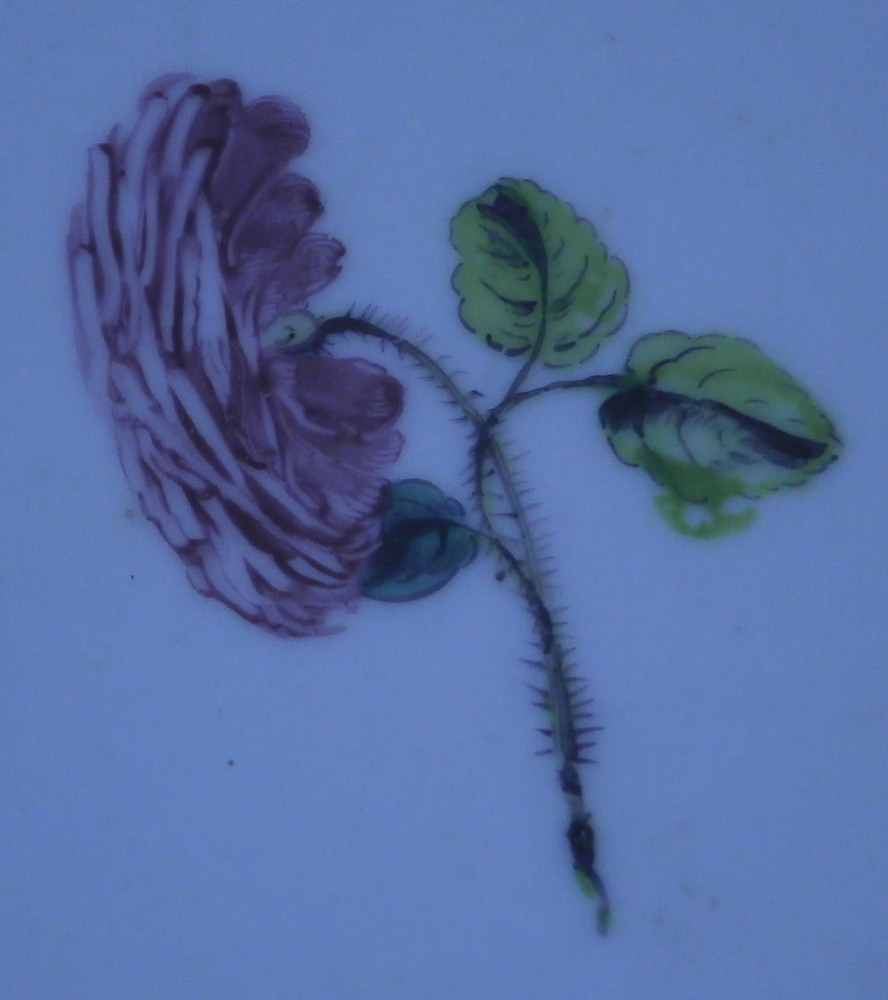 This is a nice plate made by Chelsea around 1755. It is made of soft paste porcelain and that combination with their amazing polychrome enamels is just stunning. The piece is hand painted with a large floral arrangement to one sides with the rest of the plate filled in with fours larger and three smaller flowers. Nicely shaped edge with their typical brown trim to it. The plate is in good condition with some small chips along the very edge painted in to hide them perfectly. Only one is slightl larger and is visible when on display but does not take away from the piece. All chips are shown. A bit of stacking wear to the large arrangement and more visibly to the flower opposite of it as shown. Chelsea porcelain is hard to find for sure! The piece is marked with the tiny red anchor underneath as shown and it has the three typical spur marks on the back from firing and the moons when you shine a light through it. It is 1.125 inches tall and has a diameter of 8.75 inches. Please email me for more information or other pictures.