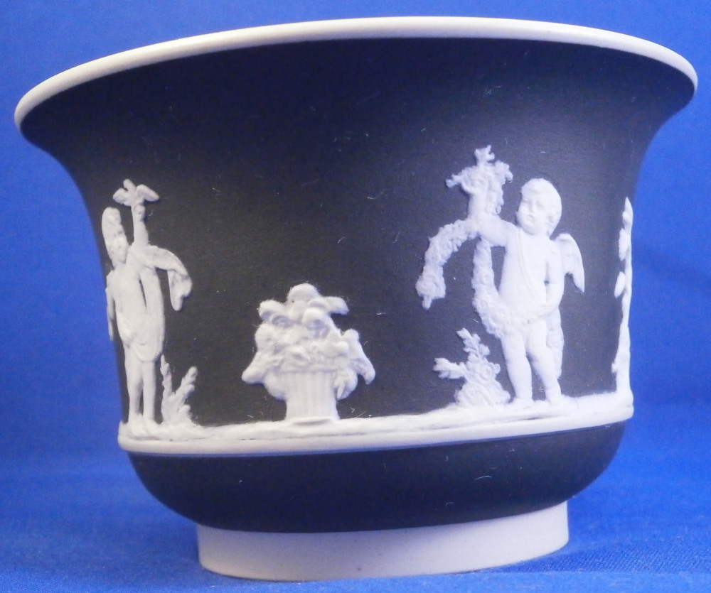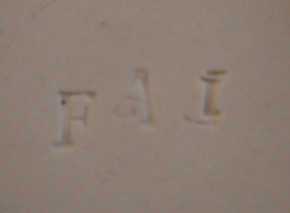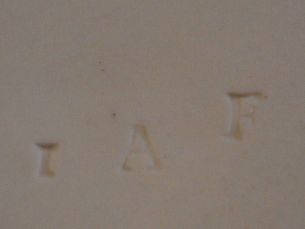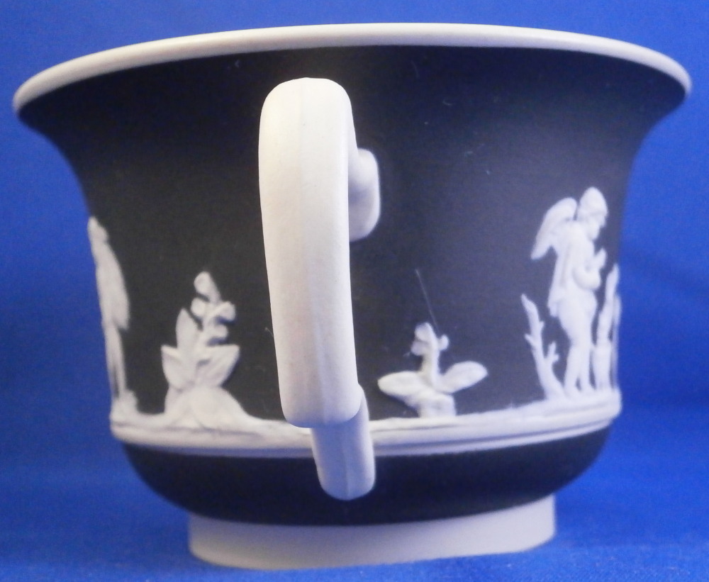 This is an interesting cup and saucer made at the Sarreguemines - Utzschneider factory in France in the 1820s. It was made to imitate the more famous Wedgwood black Jasperware and is decorated with the four seasons in white relief on black ground all around the cup. The saucer has a white relief design on black ground around the well. There is a thin raised ring around the well that almost acts like a trembleuse for the cup. Really a nice looking set and it even has the handle shape typical of English piece called London shape around this time period.The set is in great condition with a few minor manufacturing flaws but as ice as they come. No chips, repairs, etc. The cup is just over 2.25 inches tall and 3.5 inches in diameter. The saucer is 1.125 inches tall with a diameter of 6 inches. So a nice sized cup and saucer set. The set is marked underneath with an impressed F A 1 as shown. Please email me for more information or other pictures.