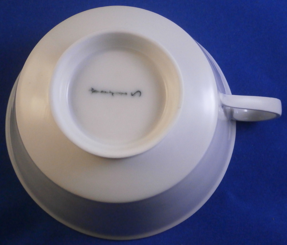 This is a tea cup from the Arkadia / Arcadia series made by KPM in the mid 20th century. A really nice shape - sleek and modern. The piece is in perfect condition. It is marked underneath with the under glaze blue scepter mark with the letter S for the Selb location under that as shown. These were from around 1950 right around the end of the war. The cup is 2.125 inches tall with a diameter of 3.875 inches. The teacup is in perfect condition. I have a few of these pieces so if you need more than one just let me know and we'll figure it out from there! Please email me for more information or other pictures.