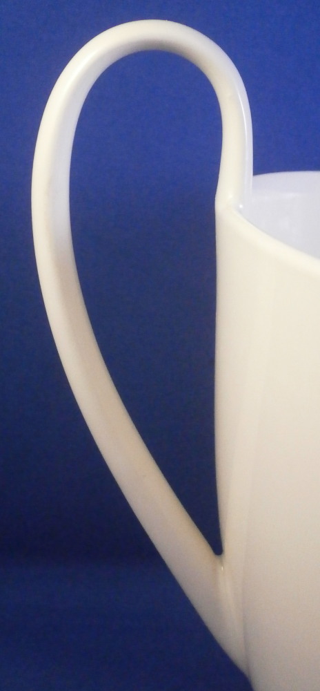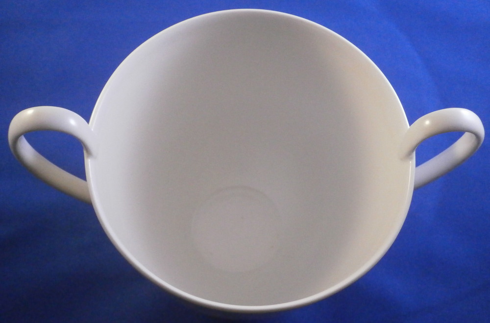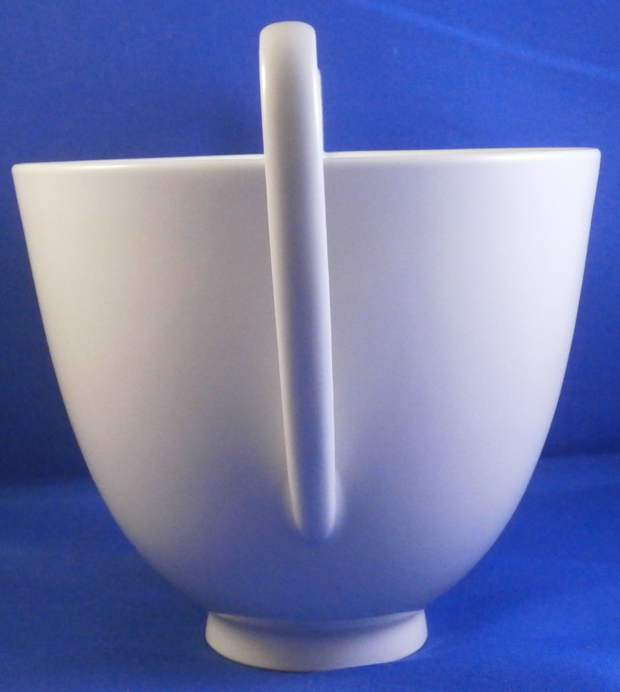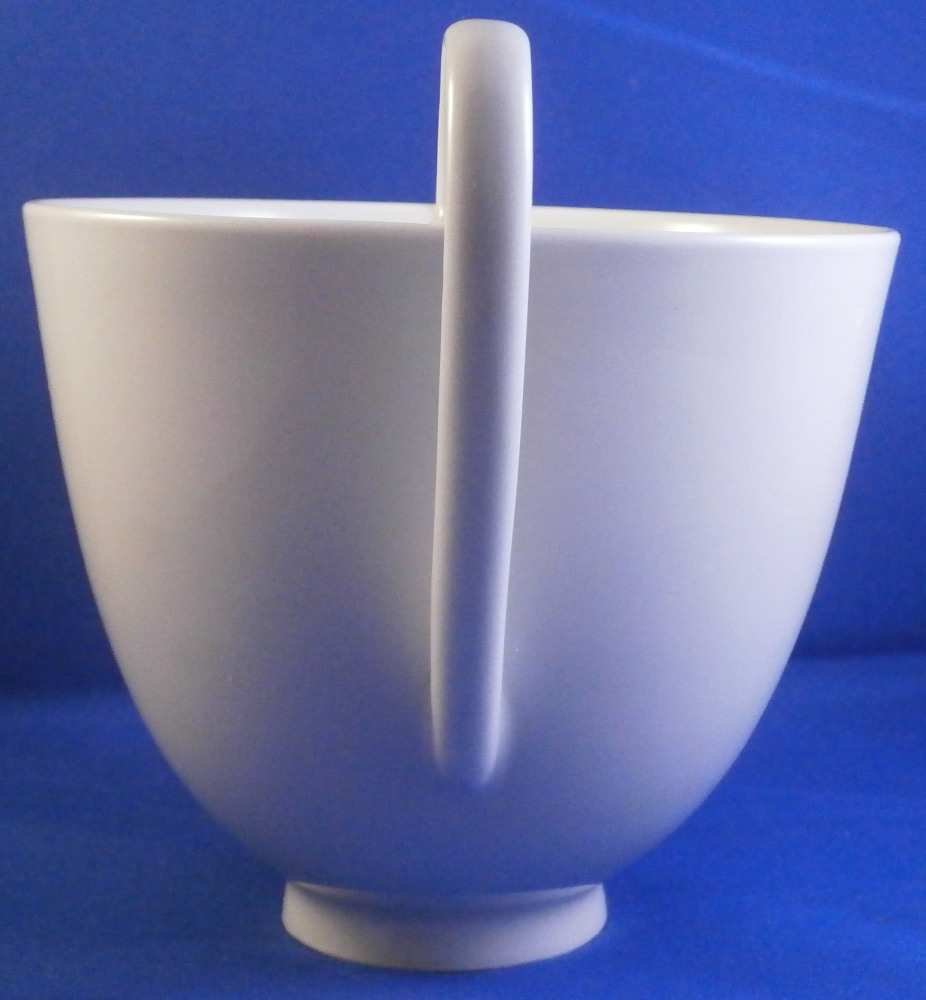 This is a fun blan de Chine vase made by KPM in the 20th century. It is known as the Hölderlin cup and was modeled by the famous Sigmund Schütz. It has a nice shape to it with a large loop handle to either side. Left in the white to show off the nice form. I don't think a painted version exists. It is meant to be a vase but can be used for many other things as well. A very sleek and modern piece. It is in perfect condition. It is marked underneath with the under glaze blue scepter mark as shown. There is a faint line near the bottom so it is probably a second choice though I don't see a reason for that. The piece is 5.25 inches tall at the handles with a diameter of 5.125 inches. The handles stick out about an inch from there. Please email me for more information or other pictures.