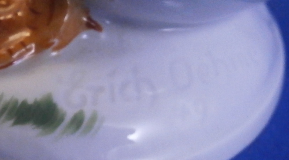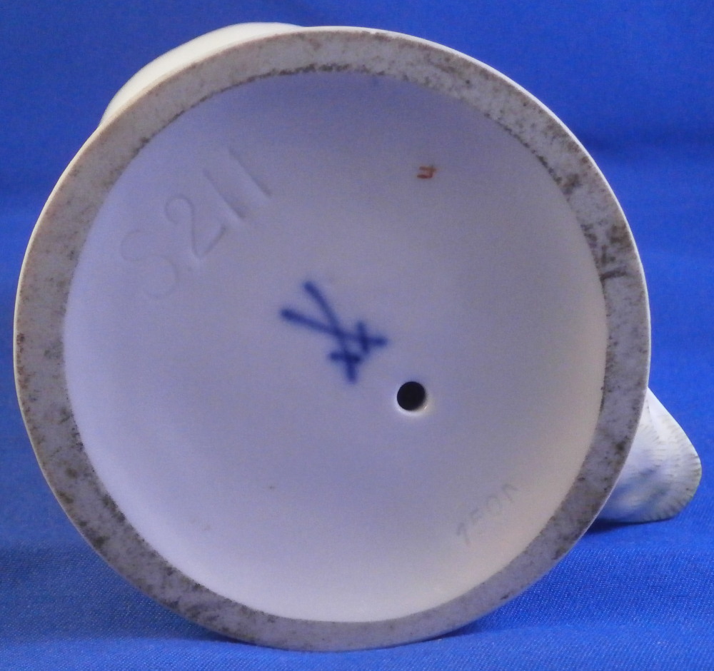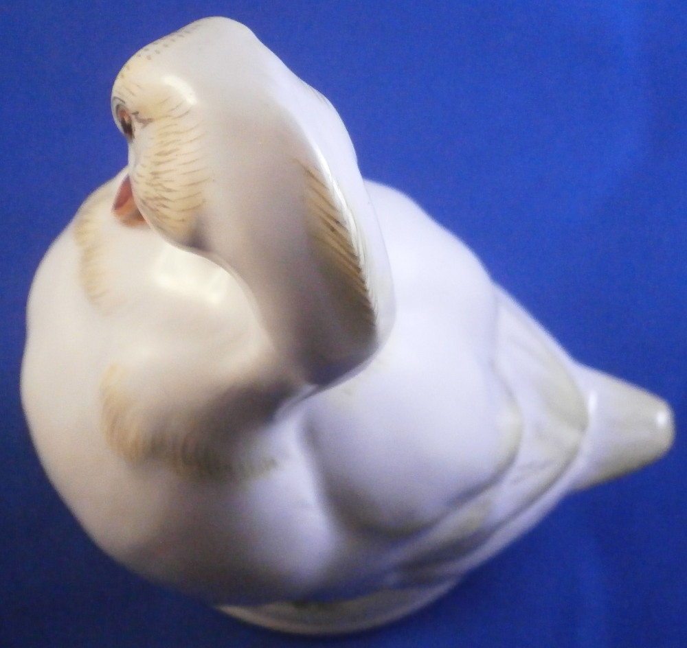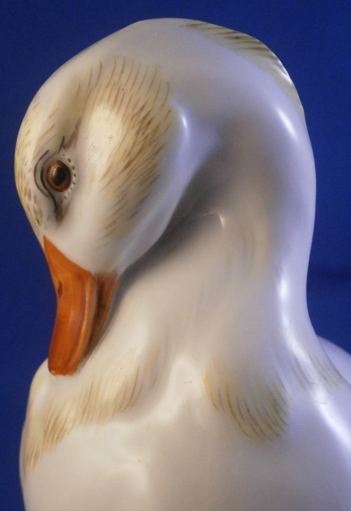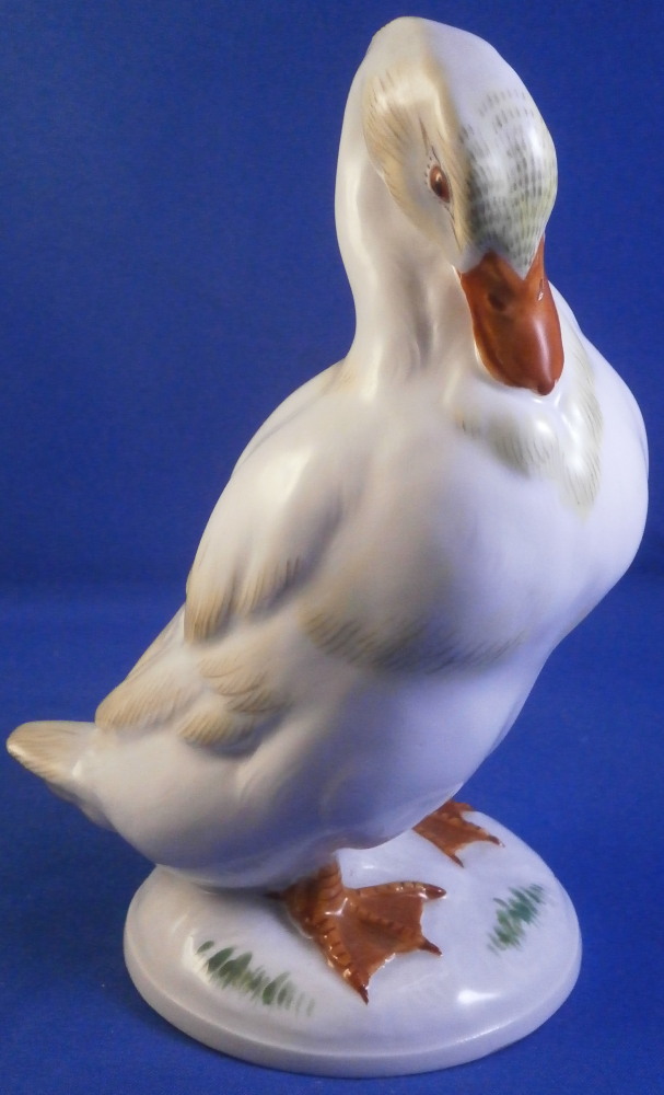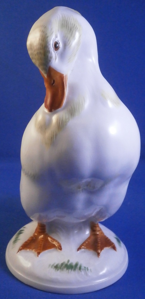 This is a fun figurine of a female duck made by Meissen in the mid 20th century. Originally modeled in 1949 by Erich Oehme. A very cute figurine that is nicely modeled and off course superbly hand painted. The duck is preening itself. The figure is in perfect condition which is always a bonus. The piece is 5.5 inches tall, 2.75 inches wide and 3.75 inches deep. The bird is marked underneath with the under glaze blue crossed swords mark (first choice) as well as the usual impressed numbers and a painter's mark as shown. Please email me for more information or other pictures.