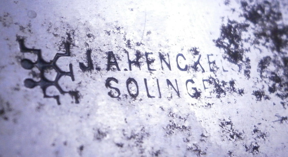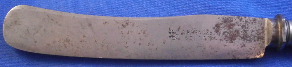 This is a a nice porcelain handled knife made by Meissen in the late 19th or early 20th century. The porcelain handle is hand painted with two very nice floral arrangements as well as two single flowers as well as two bugs and a bit of gold trim to the ferrule end. The porcelain piece is marked but hidden under the ferrule. I have some other pieces from this set without the blade and the mark is clearly visible on those. The knife is in great condition with some oxidation to the blade. The ferrule appears to be made of silver. The blade is marked J.A. Henckels Solingen as shown. A rare chance to get a Meissen porcelain handled knife! The piece is about 8.125 inches long with the visible porcelain being about 3.125 inches long. It is about 0.625 inches wide. This one matches the other one I have up for sale if anyone would want a rare pair. Please email me for more information or other pictures.