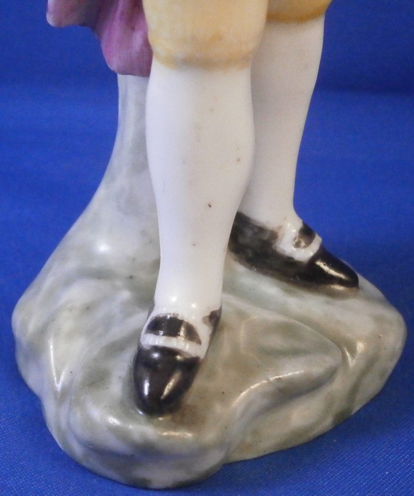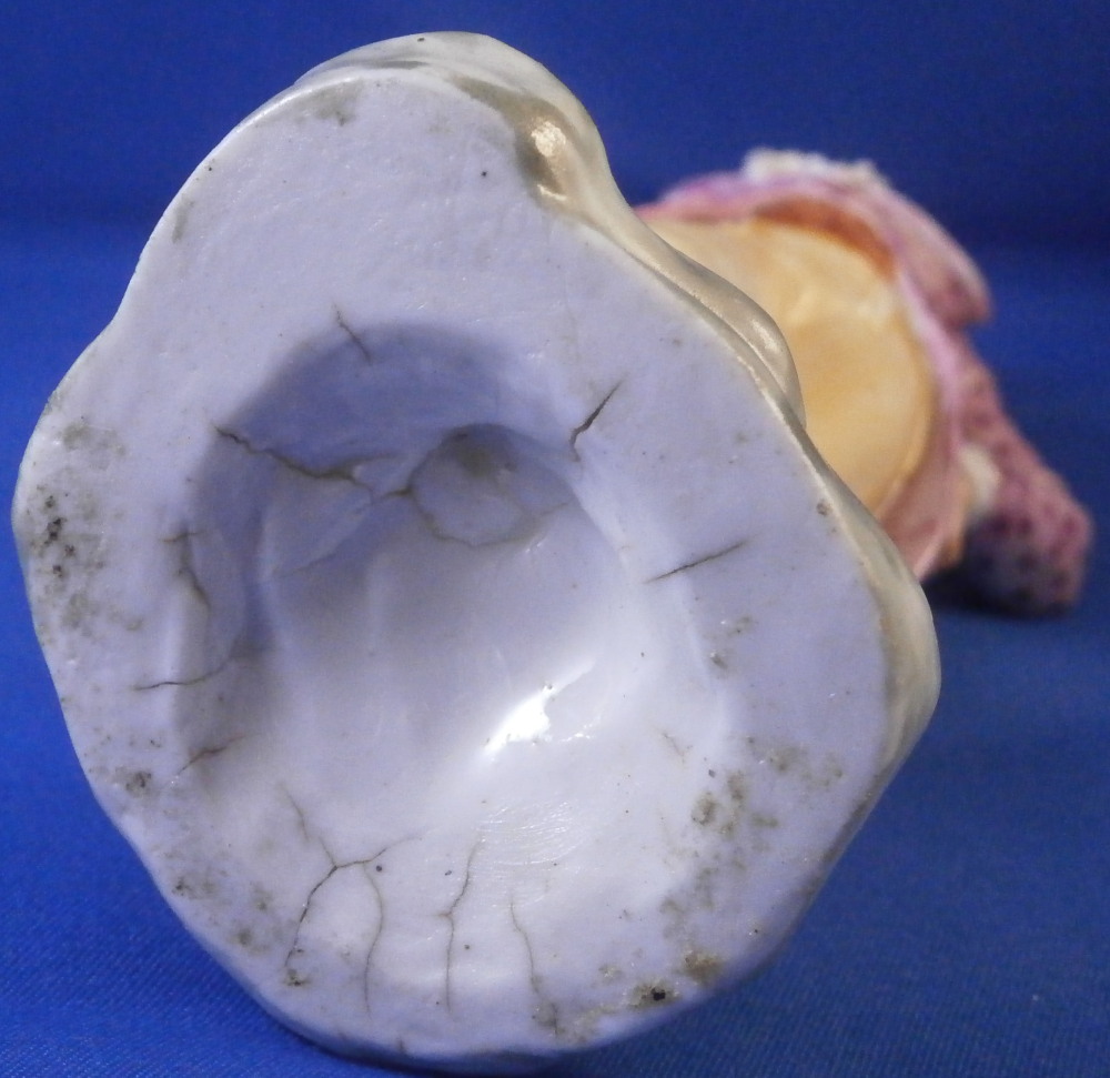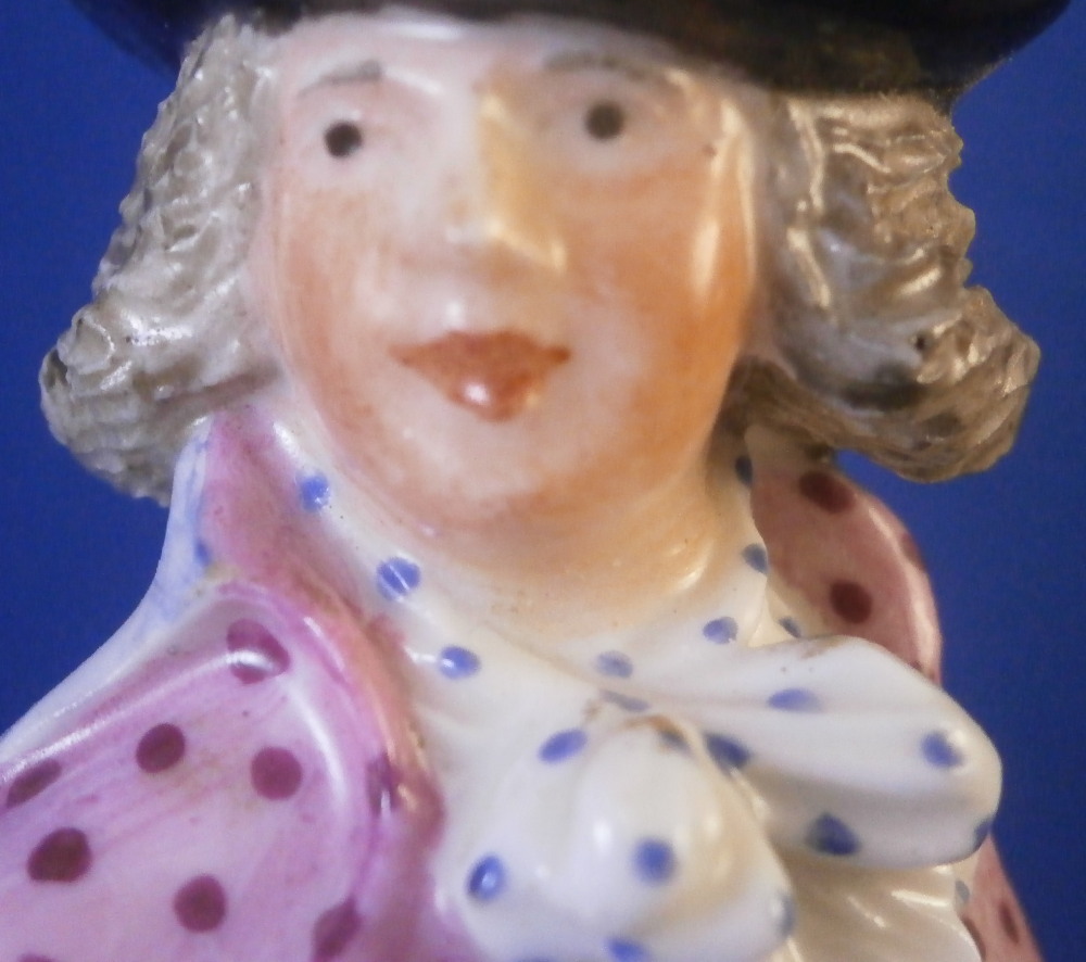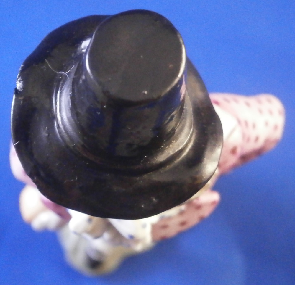 This is a very rare figurine made by Naples ( Real Fabbrica Ferdinandea ) around 1795. It is from the Real Passeggio series and is of a gentleman wearing a fancy outfit including long pink coat with a dot design to it, top hat and yellow pants. Standing on a simple base. Typical hair style for this maker and period. The figure was most likely modelled by Filippo Tagliolini (head modeller) and painted by Giovan Battista Polidoro. He is made of softpaste porcelain. Really well modeled and hand painted and one can see the Capodimonte influence in the painting and colors. The figurine is in superb condition with some chips to the edge of the hat which were colored in to hide them better. He displays perfectly! The piece is unmarked which seems to be the norm from the few pieces I have come across. The figurine is about 6.625 inches tall, 2.5 inches wide and 2.25 inches deep. Please email me for more information or other pictures.