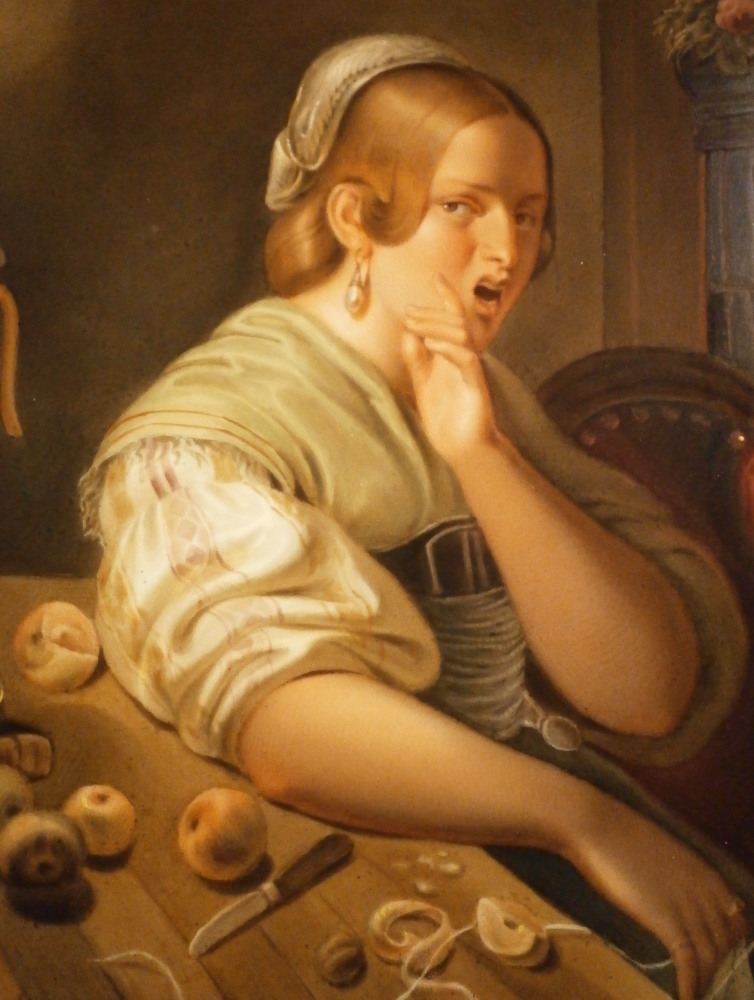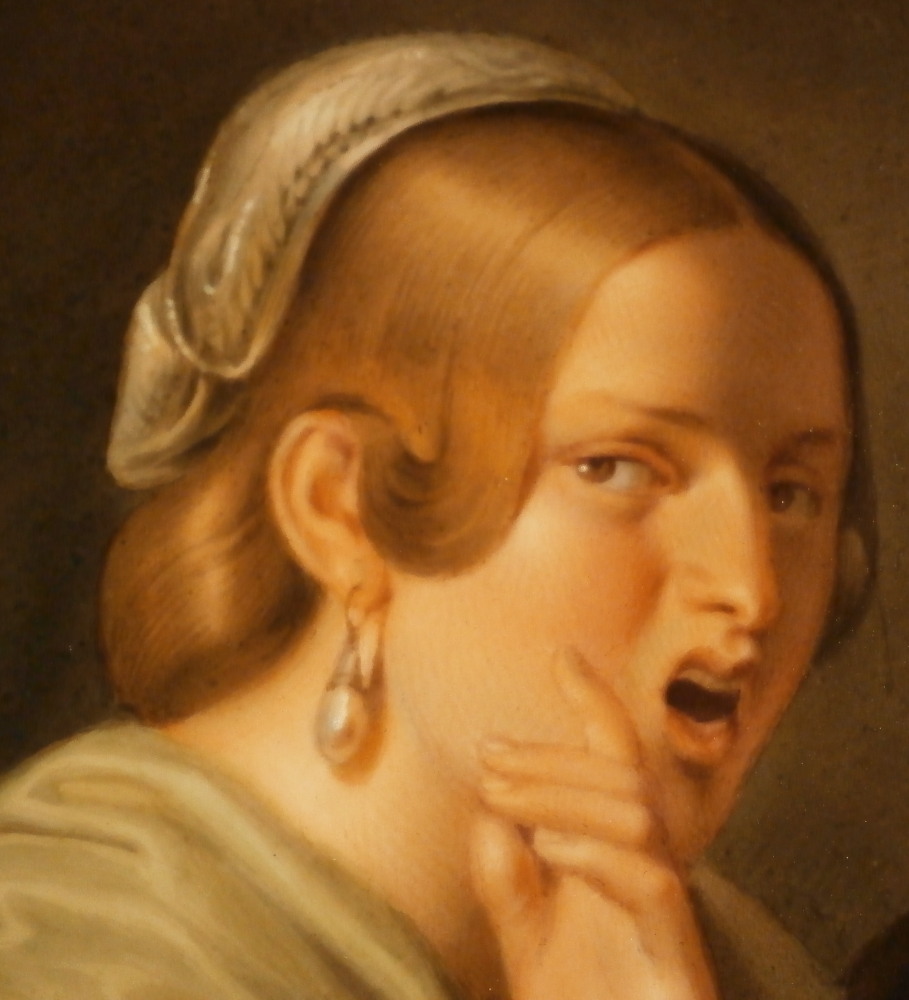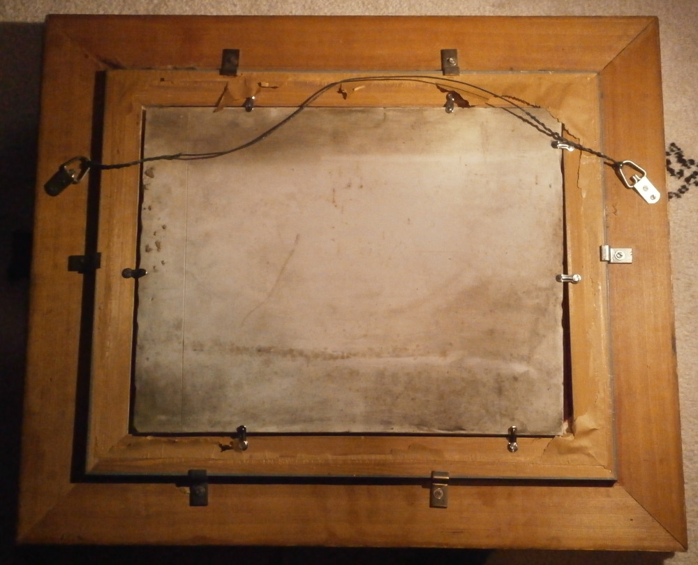 This is another one of those very special once in a lifetime kind of piece. It is a plaque made by Nymphenburg around 1850. After researching it for a while I found the original oil painting to it, titled "The sulking couple" (Das schmollende Ehepaar) by Johann Peter Hasenclever of Germany. It was painted by him in 1839 and was then part of the royal collection of King Ludwig 1st of Bavaria (grandfather of the Ludwig that build Neuschwanstein aka the Disney castle inspiration). This later became part of the Neue Pinakothek, a museum in Munich, Germany but has since been sold. The King initiated the copies of the original oil paintings onto Nymphenburg porcelain and from 1835 the paintings were copied onto plaques. So this is very likely one of those plaques from the royal collection. There were some other ones made for rich clients but usually from paintings outside the collection. Any plaque by Nymphenburg is very rare but one of this size and quality is almost never seen outside of museums. The quality is so fine I had to look with a magnifying glass to see the brush strokes. So many fine details! The painting is of a gentleman smoking a pipe typical of this period while the lady is sitting at the other end of the table quite obviously mad at him. My daughters were discussing it and since she looks madder, it is the gentleman guilty of something (which is pretty much always the case). I figured he was out too late with his buddies :) The plaque is in great condition - the area you see is perfect. on the back side you see that the plaque was cut a bit before being painted. One each side and there is some chipping with that but it was made that way so is not considered real damage. The piece is framed with a matt of some sort of velvet like material in a burgundy type color with a fancy gold frame that is stunning. The frame has some minor corner issues but displays perfectly and looks amazing on the wall. What a piece! As special as it comes! Very heavy though so I am not super comfortable hanging it on the wall though it obviously has done so in the past. For now it will reside in my office :) The back of the piece is marked with some numbers as well as the impressed shield mark with a star above it. Used from 1850 until 1862 according to some books, in others a bit longer. The scene has an artist signature as shown though I cannot make it out. I read it as Steiner my dad as Sturm. No idea. The visible part of the plaque is 16.25 inches wide and 12.5 inches tall and about 0.375 inches thick. The piece with the frame is about 2.5 inches deep, 26.625 inches wide and 21.75 inches tall. A truly superb piece! Please e-mail me for more information or photos.