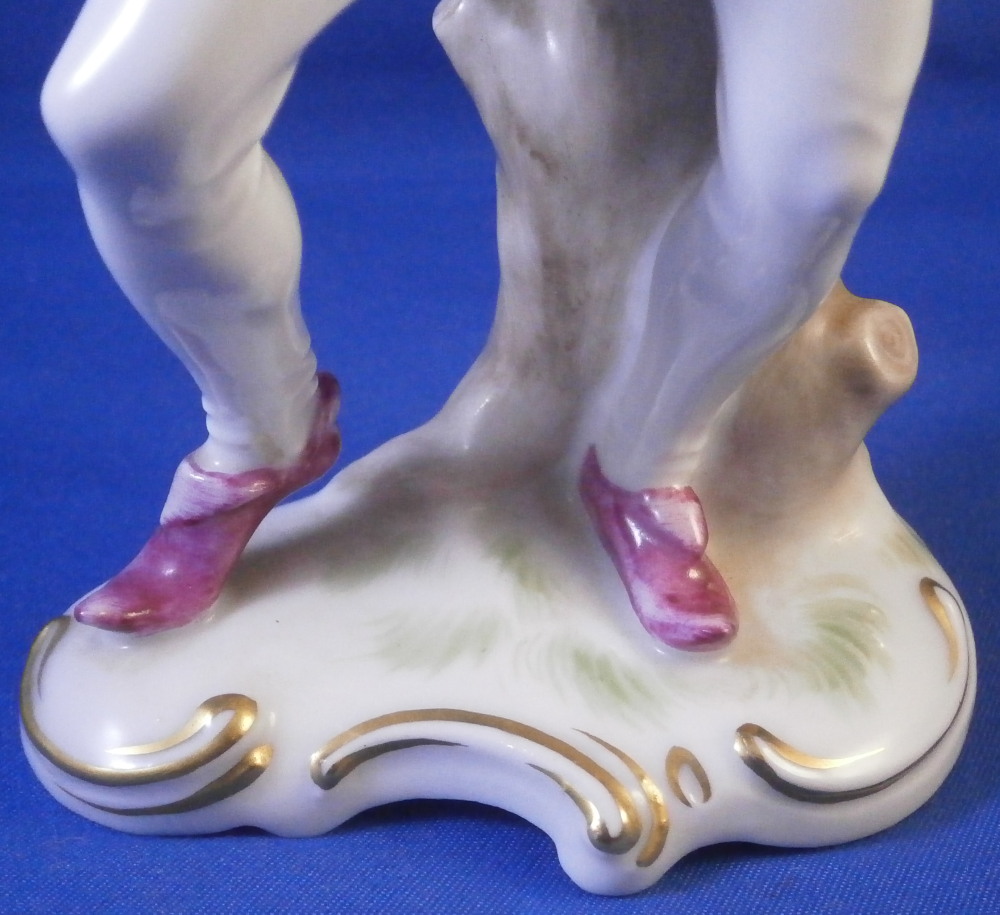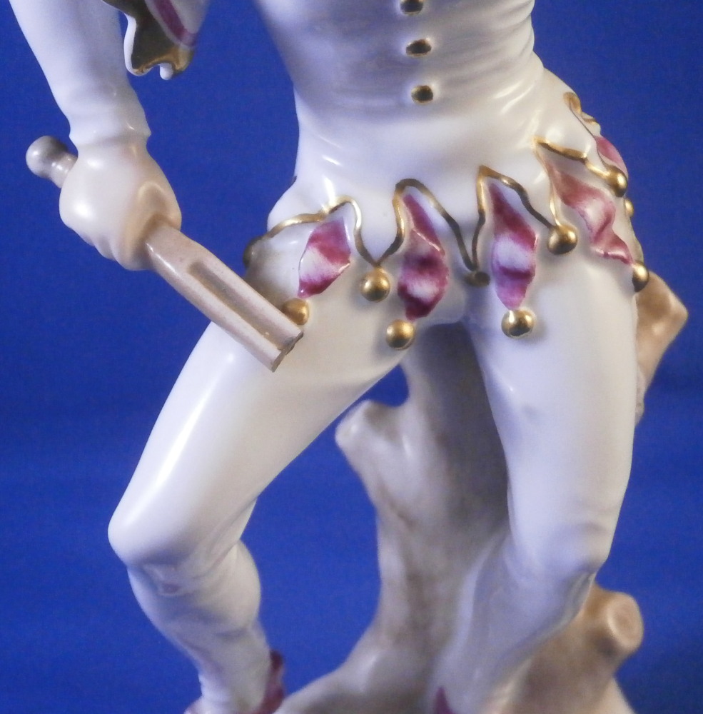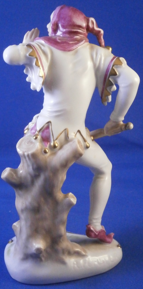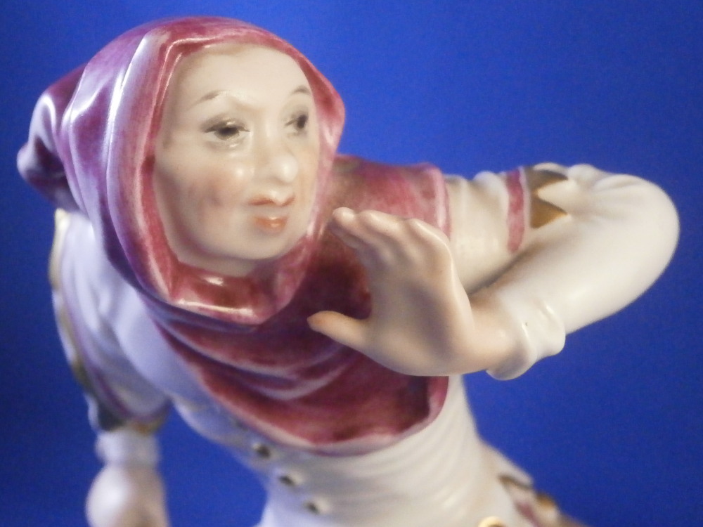 This is a fun porcelain figurine made by Rosenthal in the 20th century - 1955 to be exact. A hard to find example by a great maker. The figure is of a Harlequin / Jester / Clown and was originally designed by Richard Förster who is quite famous among their modelers. A fun figurine that is well modeled with lots of playful details and hand painted nicely. The piece is in great condition but the front part of the stick he is holding in his right hand is broken off. A very common issue with the model. It is marked underneath with the green Rosenthale mark with Selb-Plössberg under it as well as Germany with a dot to either side. Impressed number 162 and R. Förster impressed on the back of the base as shown. The figurine is 5.5 inches tall, 2.75 inches wide and 1.75 inches deep. Please email me for more information or photos.