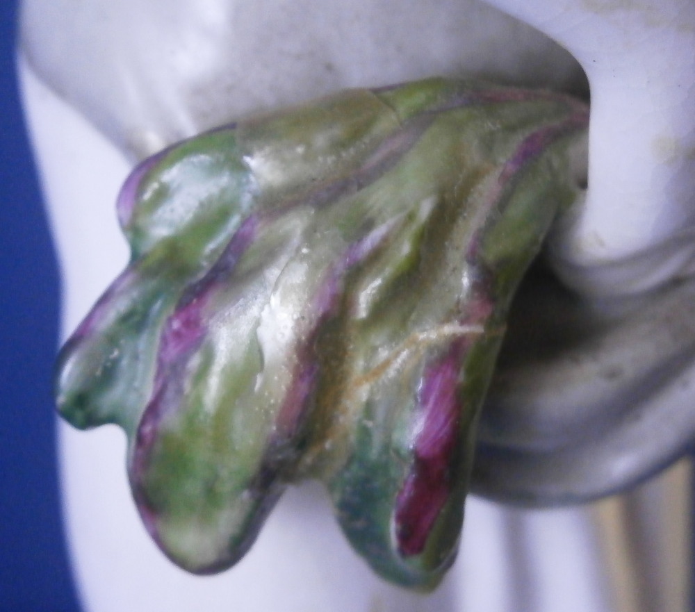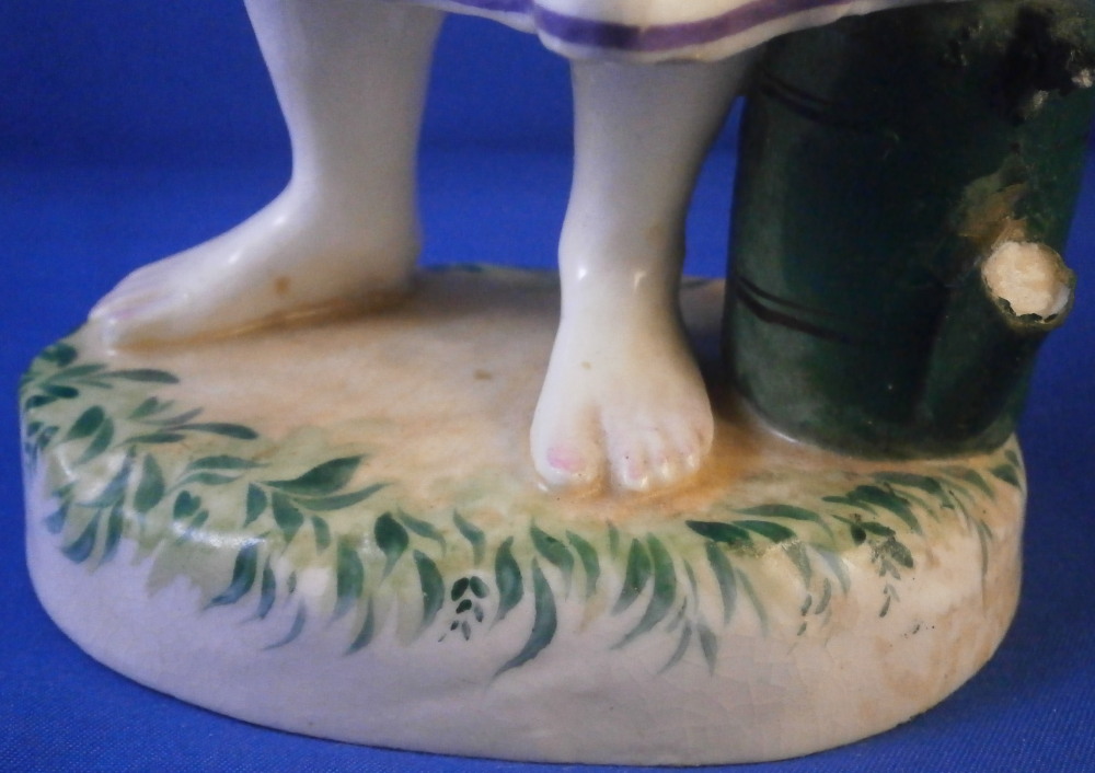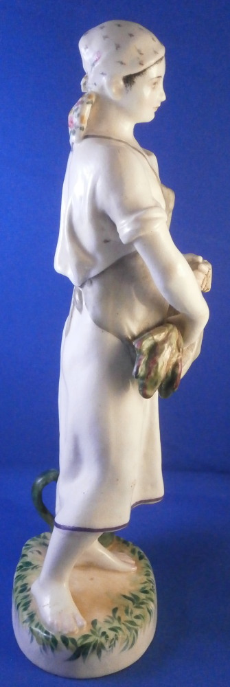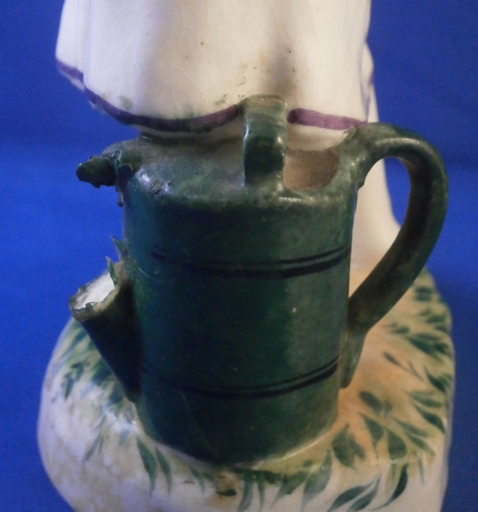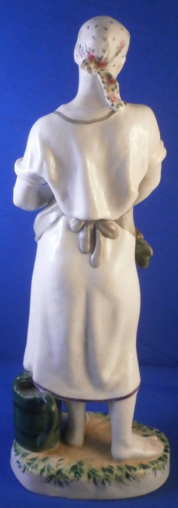 This is a rare original period figurine called the Gardener made by the State Porcelain Factory in Leningrad ( Used to be St. Petersburg Imperial factory ) in Soviet Russia in 1928. These Russian figurines from this period are quite rare and sought after! This figure was modelled by Alexander Terentewitsch Matweew in 1926. Unlike some of his other models this one of the gardening lady with vegetables in her apron is very rare. I have however sold one in better condition before. The figure is superbly modeled and hand painted and one of those pieces that just 'speaks' to you. Just amazing! The piece is of a lady gardener or peasant wearing a nicely painted cloth over her hair while picking beets or radishes or something along those lines which she placed in her apron. A watering can by her side on a nicely painted base. The detail of the painting is amazing and looking at this piece one can understand why these pieces are so popular! The figure is in OK condition. The greenery of the vegetables has been restored quite well, The watering can was restored at the handles and is missing the entire spout section, the apron tip she is holding in her left hand should be draped over a bit longer and the back of her hat covering is missing one of the ends. Some fine crazing throughout and a firing line on her left should side. An easy fix for a good restorer and this examples is a lot cheaper than the one in better condition I already sold. So it is easily worth the cost of having her brought back to perfection! The figurine is marked underneath with the impressed hammer and sickle mark with the piece of cog and 1928 (a rare anniversary mark) as shown. Also an impressed square with the artist initials in it. The figurine is larger than most being 10.125 inches tall, 3.75 inches wide and 2.625 inches deep. If you collect these pieces she is a must have! Please email me for more information or other pictures.