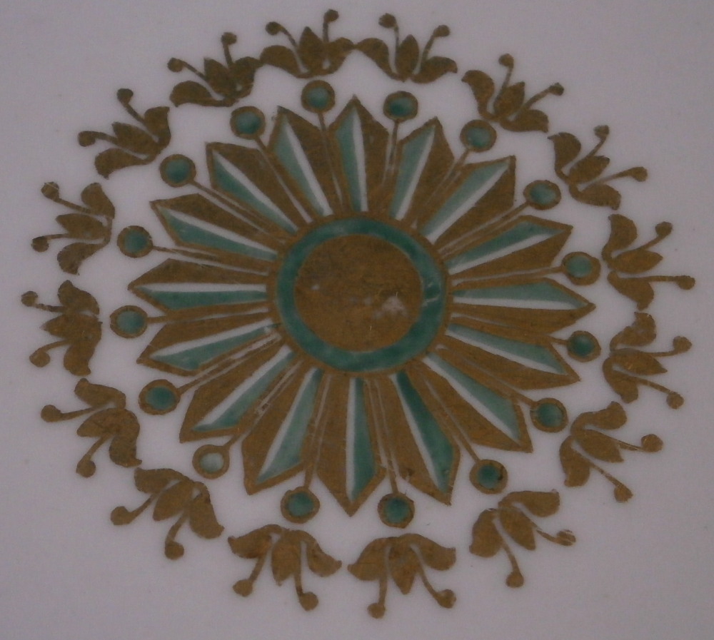 This is a great porcelain plate made by the famous imperial factory of St. Petersburg during the reign of Tsar Nicholas I whose reign was from 1825 until 1855. I would date it to the earlier part of his reign due to it being heavily influenced by the French style en vogue during that time. Very much in the Sevres style which was the top maker during this time! I do not know what service this is from but I have had other pieces from it over time. Probably a soup plate. It is decorated with a superb green and gold medallion in the center, a fancy gold design along the edge of the well with a tin and thick band of gilding beyond that. The outer edge of the thick band of gilding has a thing green trim to it. The rim has a fancy gold design to it with the edge having a gold trim and then a green design on pink ground with a tin gold band on the other side. A gold ring around the outer foot ring which is a sure sign of quality! A bit hard to explain but the pictures do tell the story much better! The plate is in great condition with just a touch of wear and use marks - it is about 200 years old after all. It displays very nicely! The dish is marked with the blue N under a crown with the I under it for Czar Nicholas the first. The plate is 1.5 inches tall and 10 inches in diameter. Please email me for more information or other pictures.