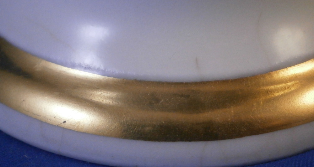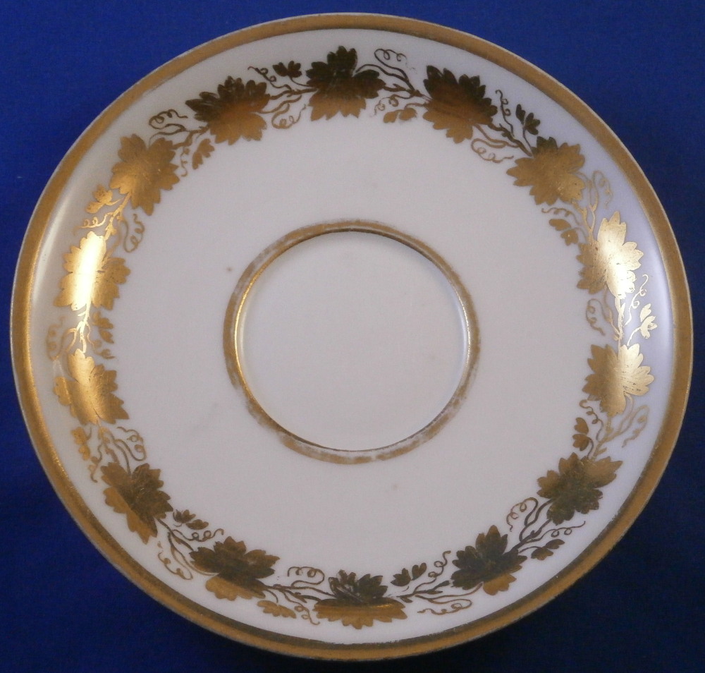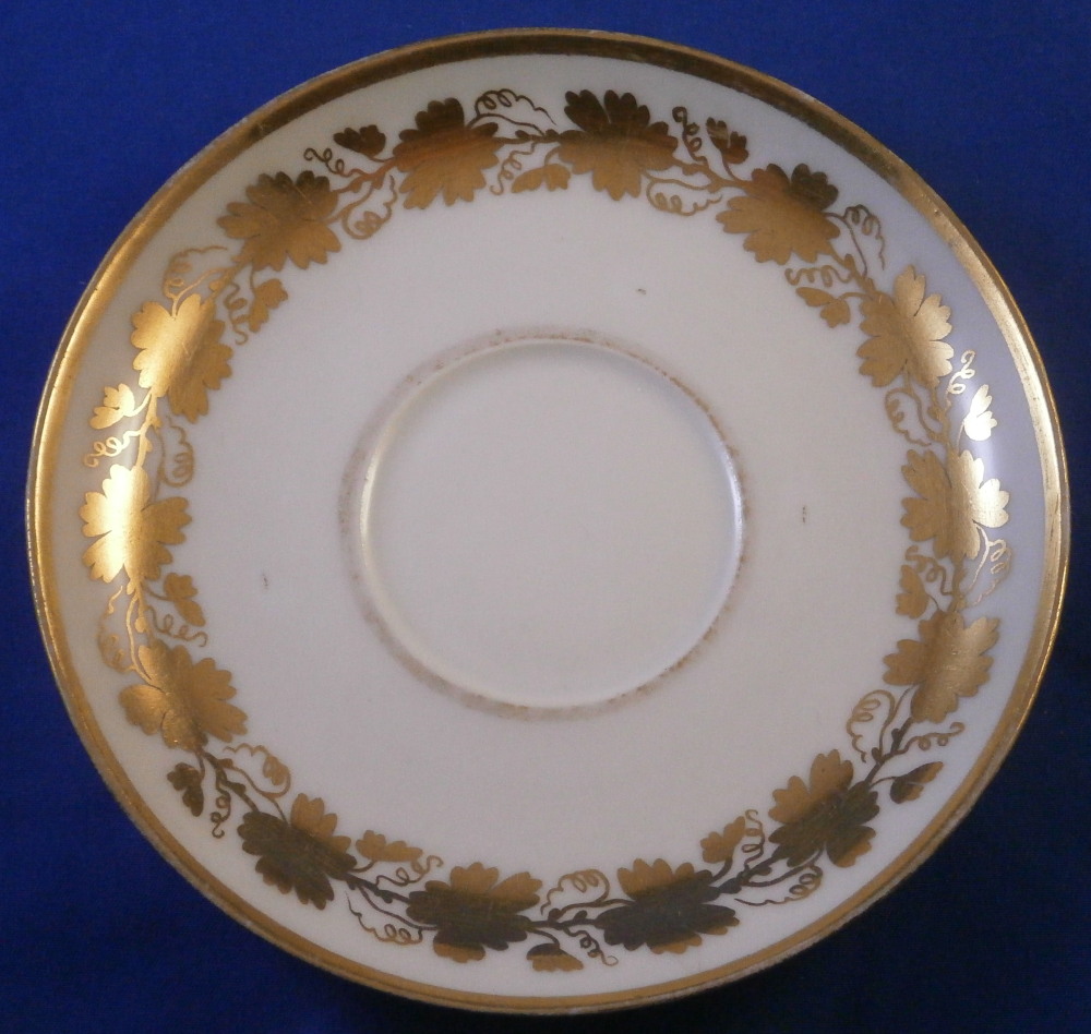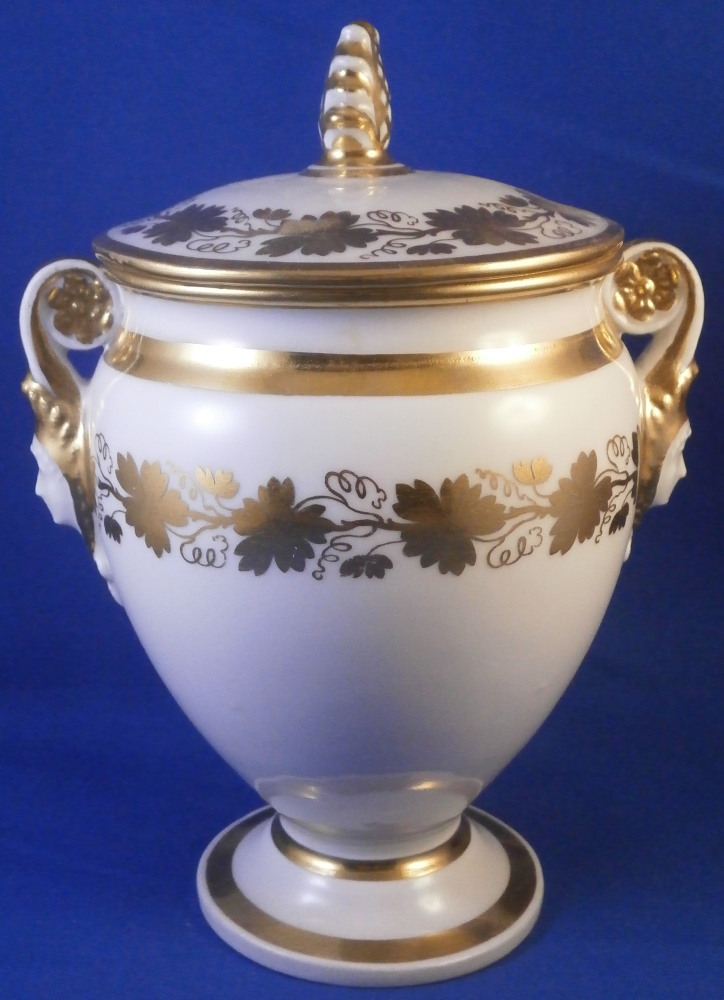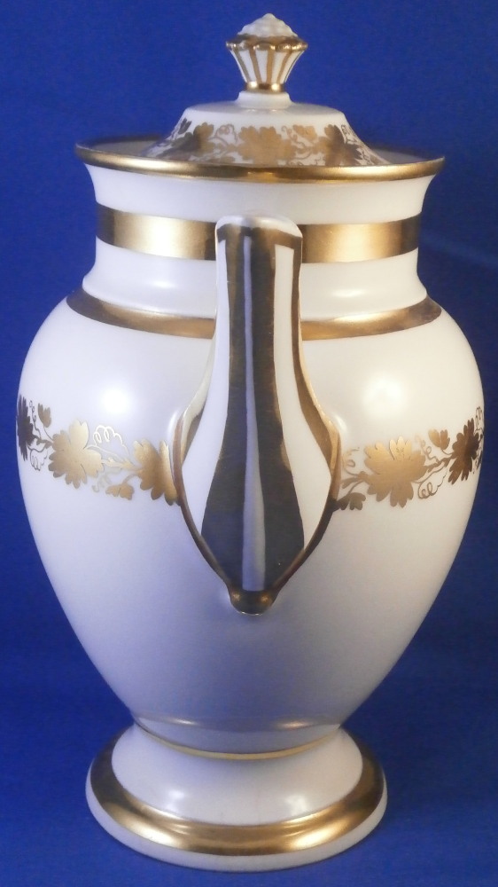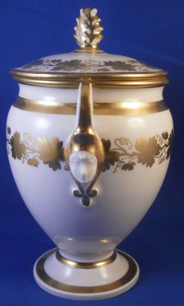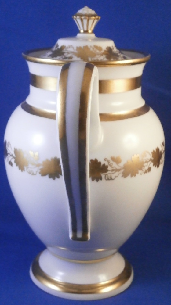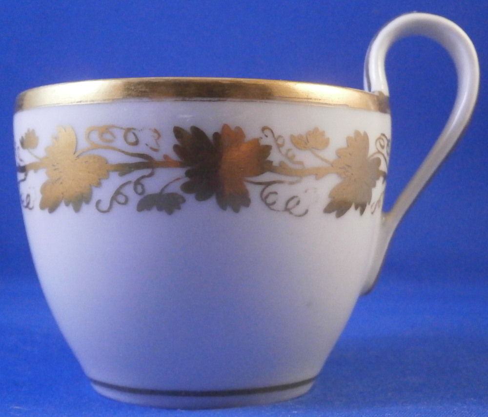 This is a great tete-a-tete or teaset for two made by Royal Vienna in the 19th century - in the 1830s. The entire set is hand painted with a gold grape leaf garland design as well as some gold trim to the edges, finials and handles. The sugar bowl has two superb face relief designs to it forming the base of its handles. A nice looking set more than likely for hot chocolate. There are two cups and saucers, a lidded sugar dish and two almost identical lidded pots. One likely for hot chocolate the other for milk or hot water. The set is in great condition with some wear to the gilding mostly to the gold ring around the well of the saucers. Otherwise the wear is minimal on the very edges. The cups are about 2.125 inches tall plus another ~0.75 if you include the handle and have a diameter of 2.625 inches. The saucers are 0.875 inches tall and one being just above 5.125 inches in diameter while the other is 5.375 inches in diameter. The sugar dish is 6.625 inches tall including the finial on the lid, 5 inches wide including the handles and 4.125 inches deep. The slightly smaller pot is 8 inches tall including the finial, 7.75 inches from handle to spout tip and 4.25 inches wide. And lastly the slightly larger pot is 8 inches tall including the finial, 7 inches from handle to spout tip and 4.25 inches wide. All pieces are marked with the impressed shield mark, as well as some other impressed and gilder's marks. The gilder's number seems to be 25 on most pieces for Franz Janscha . The year codes are in the early to mid 1830s. 832 for 1832, 836 for 1836 and 834 for 1834. Some are impossible to make out. Just a really nice set that's is almost 200 years old now. Please email me for more information or photos.