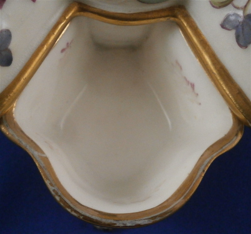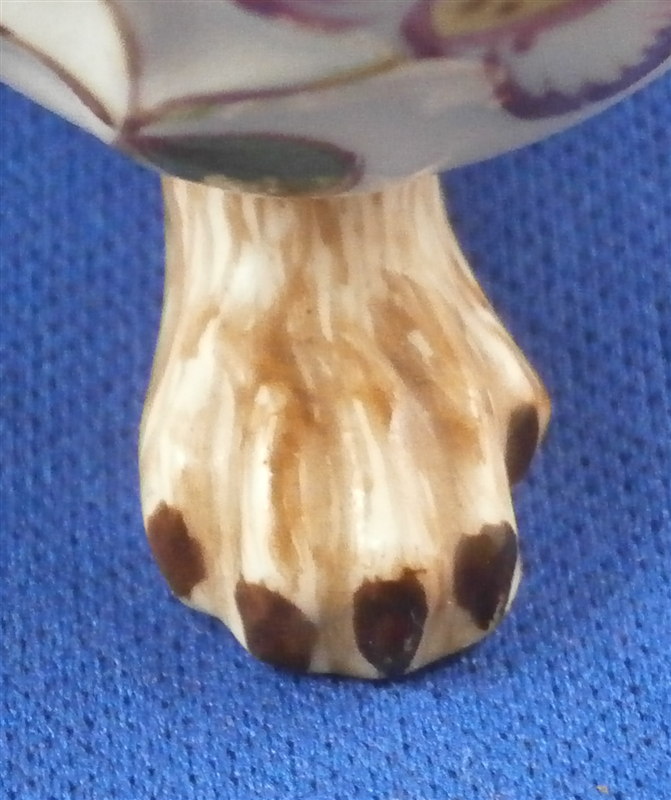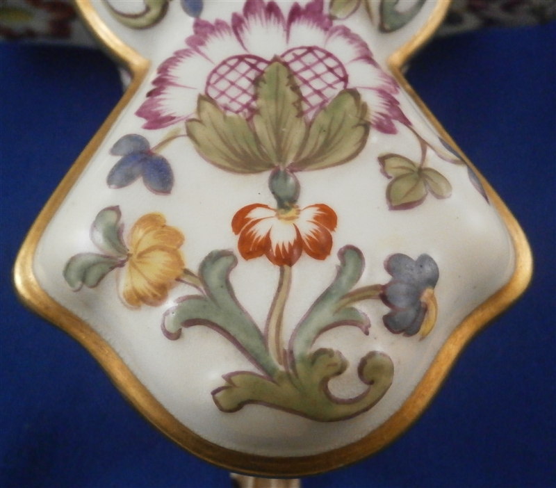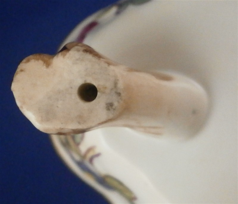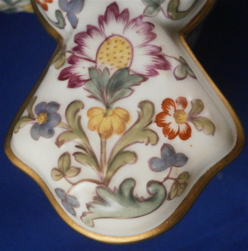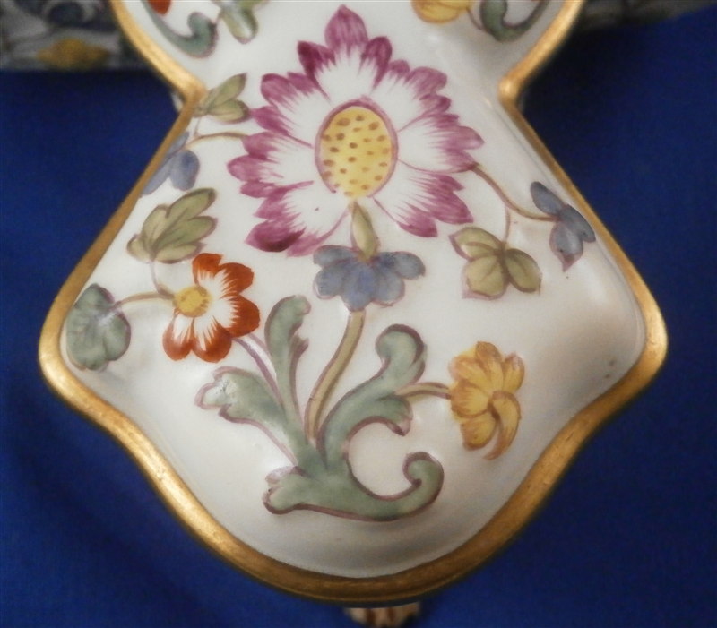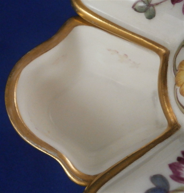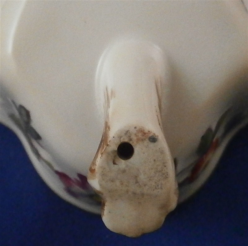 This is a fantastic amazing little triple spice box dish with its cover most likely made made by Doccia / Ginori and definitely in the 18th century. The piece is made of soft paste porcelain in two parts - the bottom is made up of three compartments sitting on three claw feet with a central cylinder into which a smaller cylinder of the upper part fits. The upper part also consists of three parts that fit perfectly over the bottom compartments to cover them but can be rotated by means of a metal pin to open up. The box is decorated with a relief design of flowers highlighted in bright colors. The main flower in puce (possibly a thistle which was popular back then) with smaller red, blue and yellow flowers and green foliage. The central knob on the lid might be a cauliflower or something along those lines. The colors just pop much more so than the pictures show and it scream Italian to me because they loved these colors and no other maker really ever came close. I first thought maybe early Bow but that doesn't fit. The box is in superb condition with two glaze crack to the udnerside of one lid compartment and a meaningly hairline on the cylinder part of one compartment on the bottom as shown. There used to be tiny puce flowers all along the sides of the bottom compartments but they are mostly worn away from years of use. The metal pin is oxidized but that is to be expected. Two of the claw feet have had work done to them but it was done perfectly and a firing imperfection was painted over with a green leaf on the underside base as shown. The base is completely glazed. It displays perfectly and works perfectly as well which is amazing. The translucency is very nice as shown and the glaze has some very very fine crazing or bubbling to it mostly on the udnerside or where the glaze has pooled a bit. This is a very rare form which was made by the early French makers like St. Cloud and Rouen - a faience maker but I also found one made by Meissen and a Chinese Export piece but it is a very rare shape to find and only very few have survived. I cannot find another one like it. The piece is not marked which is fairly normal for early porcelain by many makers. It is 2.875 inches tall (including the knobin the center) and 5.375 inches wide. One of the most fun pieces I ahve ever come across or owned! Please email me for more information or other pictures.