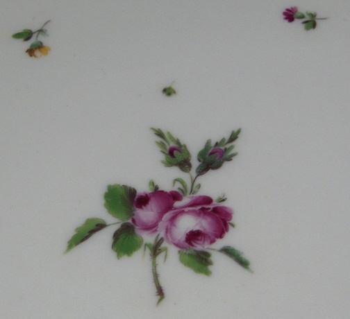This is a plate made by Amstel in during their early period in the early 1780's. It is handpainted with nice rose in the center surrounded by lots of tiny flowers and the rim has a nice gold and floral design to it. The plate is in good condition with a little wear and a small chip to the very edge of the plate as shown. It is marked with the under glaze blue Amstel mark as well as some incised marks that look like L:J in script letters - might have still been a LOosdrecht blank moved to Amstel and decorated there. The plate is 1.125 inches tall and 10 inches in diameter. Please email me for more information or other pictures.