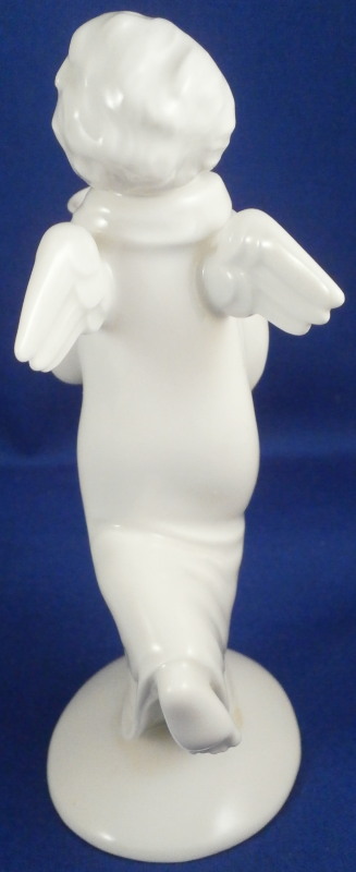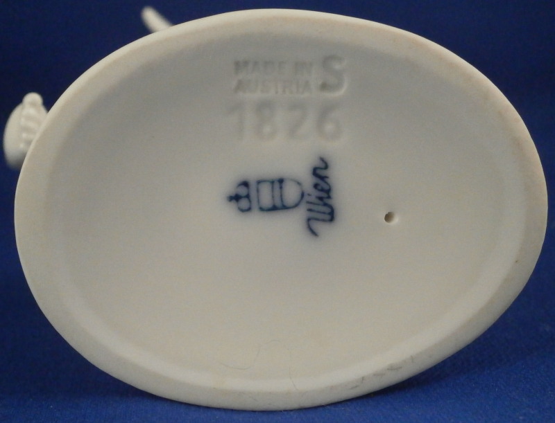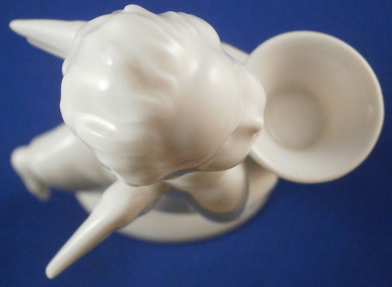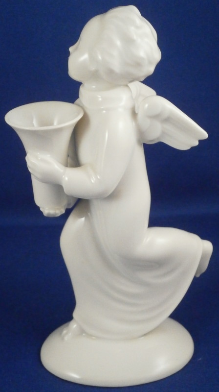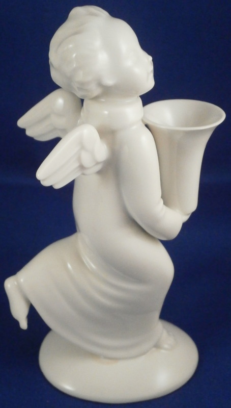 This is a fun figural candlestick made by Augarten in the 20th century. It is in the form of an angel holding a vase. Very well modeled and left in the white which I think makes it more elegant. Add a colorful candle and you are ready to go :) The figure is 4.875 inches tall, 1.75 inches wide and 2.25 inches deep. The piece is in perfect condition and marked underneath with the blue shield with the crown on top as well as the word Wien underneath, impressed made in Austria, the letter S and the model number 1826 as shown. Please email me for more information or photos.