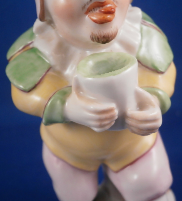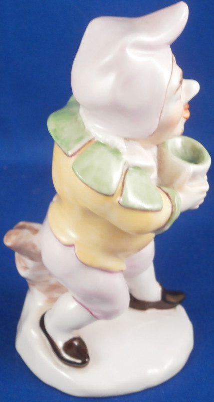 This is a fun figurine of a Callot little person (formely known as dwarf) made by Augarten during the 1920s. Named after Jacques Callot who was a baroque printmaker and draftsman from France in the 17th century. Quite famous in the porcelain world for his print of dwarves which were often used as models for porcelain figurines and paintings in the 18th century. This figure here was modeled after and 18th century original by the Vienna factory. The figure is wearing a jester or clown outfit while holding a cup of some sort. My favorite part is the little tongue that sticks out of his mouth. A superbly modeled and hand painted piece. The figure is in perfect condition and is 4.375 inches tall, 2 inches wide and 2.25 inches deep. Marked underneath with the blue shield with the crown on top as well as the word Wien underneath, Augarten Austria in a red rectangle, a black 4 as the painter's number and the impressed number 1001. Please email me for more information or photos.