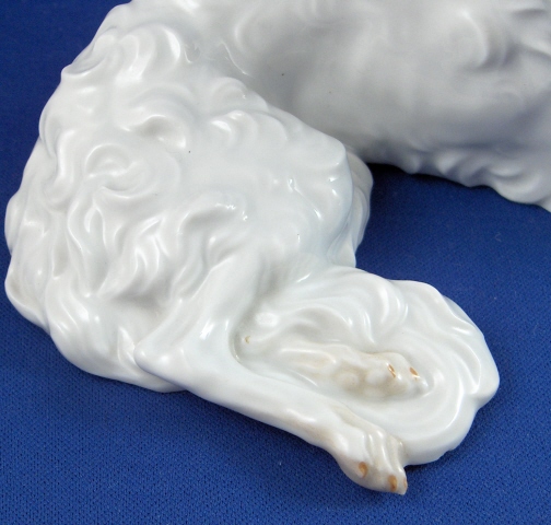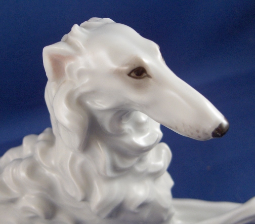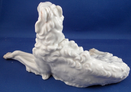 This is a figurine of a Russian Wolf dog made by Augarten around 1950. The figurine is the larger version being 4.25 inches tall, 8 inches wide and 3.75 inches deep. The dog is in perfect condition. Marked underneath with the blue shield with the crown on top as well as the word Wien underneath, impressed number 1713/II , as well as Made in Austria impressed. Please email me for more information or photos.