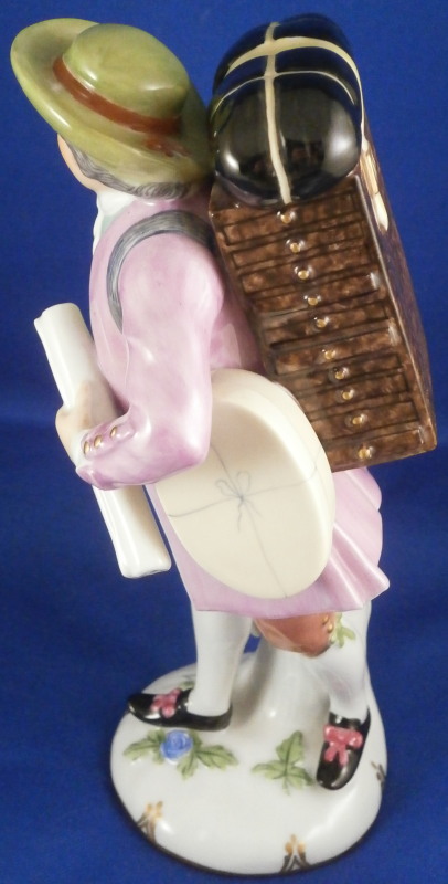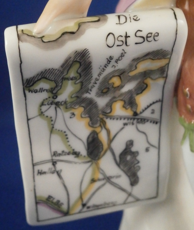 This is is a porcelain figurine made by Augarten in the mid 20th century. It is one of the Paris artisan / vendor of the Cris de Paris series Royal Vienna made in the 18th century. This is the map seller of the series. The map is of the northern part of German including the Ost See aka the Baltic Sea . showing a part of the coastline and some towns. A very well modeled figurine that is hand painted to perfection. Lots of little details. The figurine is in perfect condition. The figure is 6.625 inches tall, 3.75 inches wide and 3 inches deep. The piece is marked underneath with the underglaze blue shield mark with the word Wien underneath, impressed Made in Austira and a W and a painter's mark 27. in puce. Please email me for more information or photos.