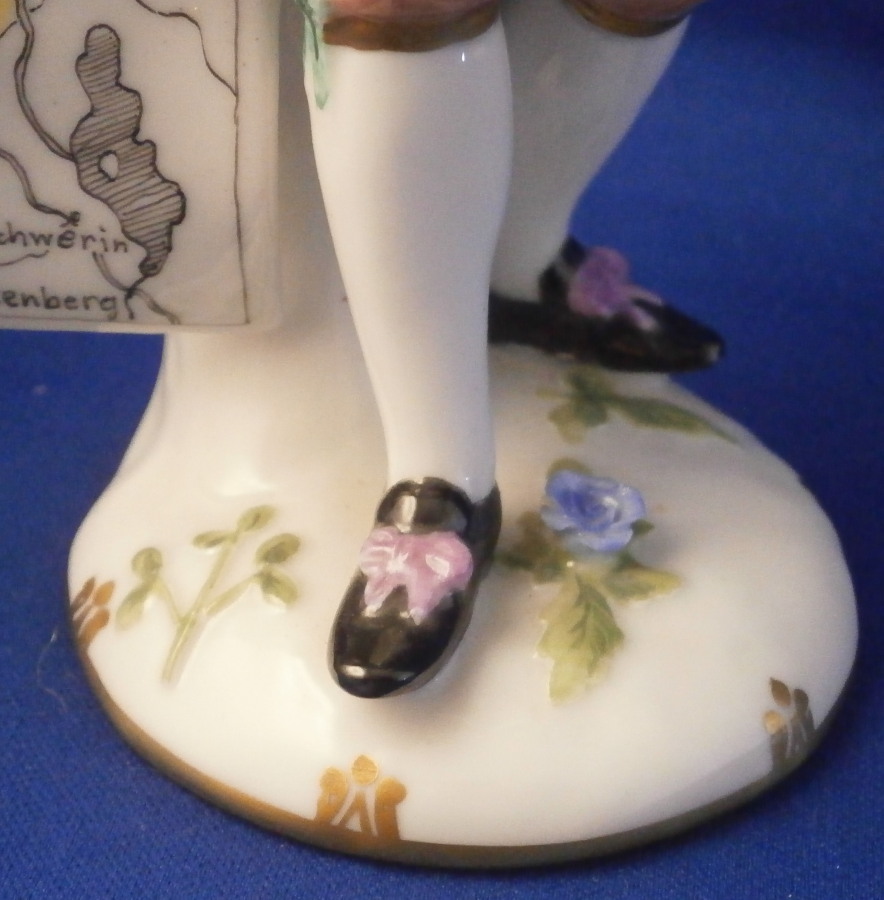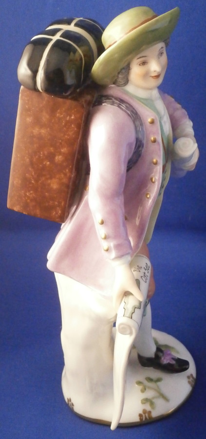 This is is a porcelain figurine made by Augarten in the mid 20th century. It is one of the Paris artisan / vendor of the Cris de Paris series Royal Vienna made in the 18th century. Augarten redid them in the early 20th century and then later on as well. This is the map seller of the series. The map is of the northern part of German including the Ost See aka the Baltic Sea showing a part of the coastline and some towns including Luebeck Schwerin and down to Wittenberg which is famous for Martin Luther. A very well modeled figure that is hand painted to perfection. Lots of little details including a flower on the base. The figurine is in perfect condition. It is 6.875 inches tall, 3.75 inches wide and 3 inches deep. The piece is marked underneath with the underglaze blue shield mark with the word Wien underneath, Augarten Wien Austria in red, Made in Austria impressed and a letter Y and a painter's number 93 in black. Please email me for more information or photos.