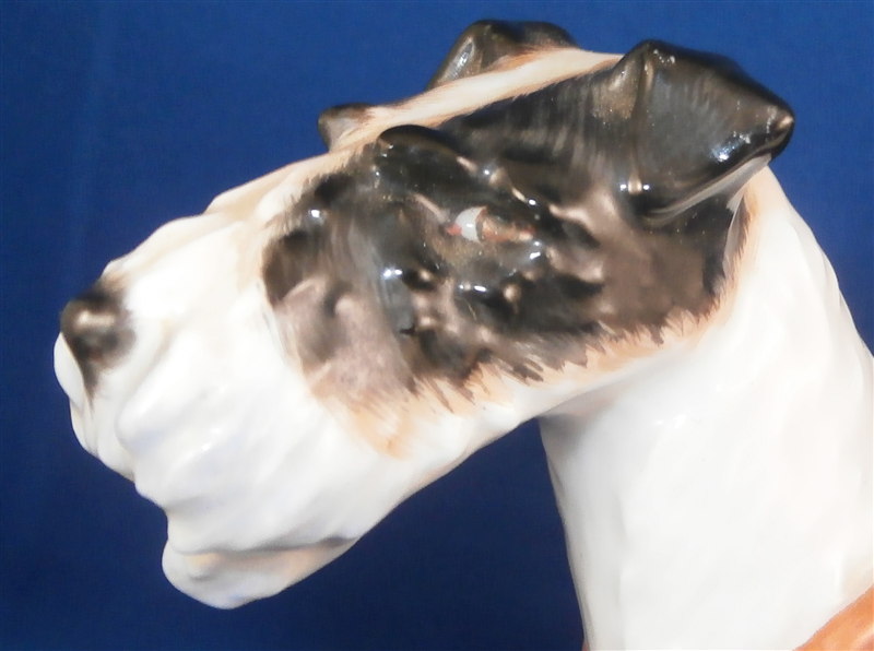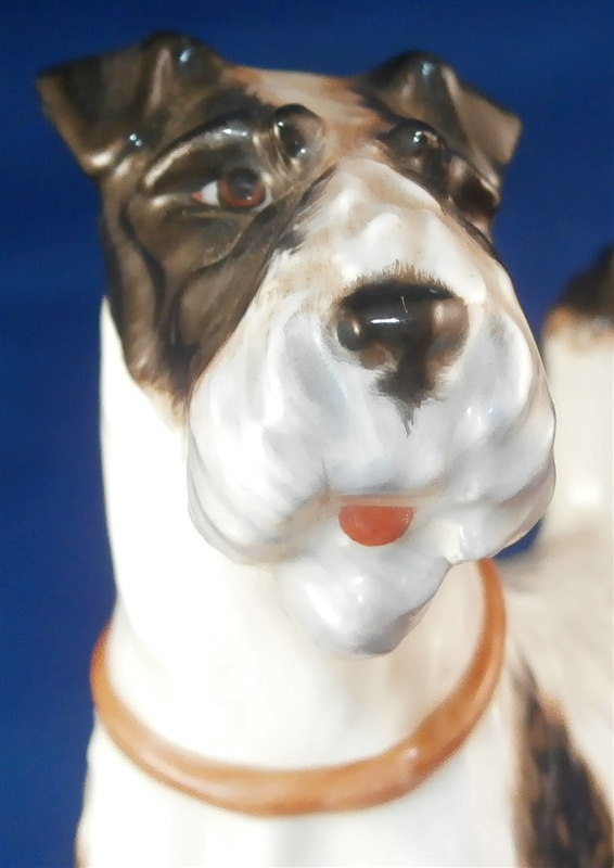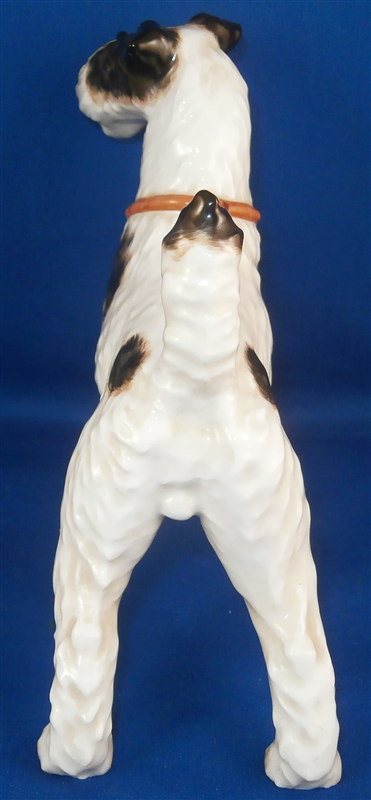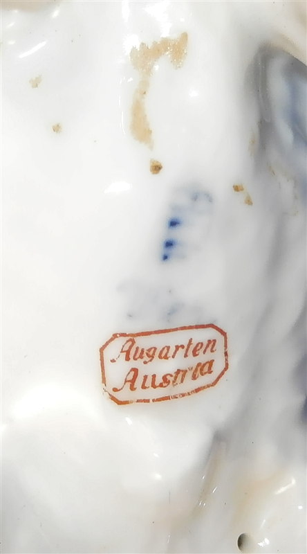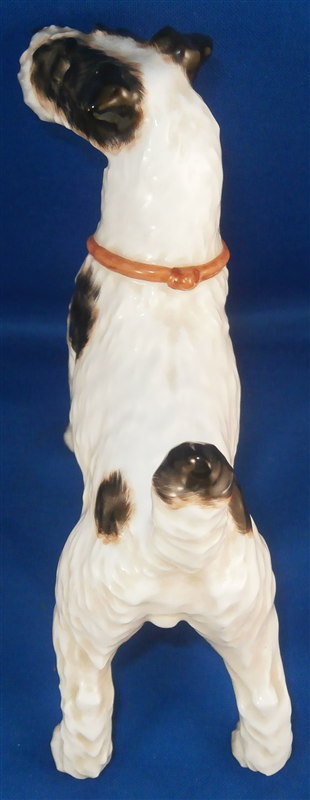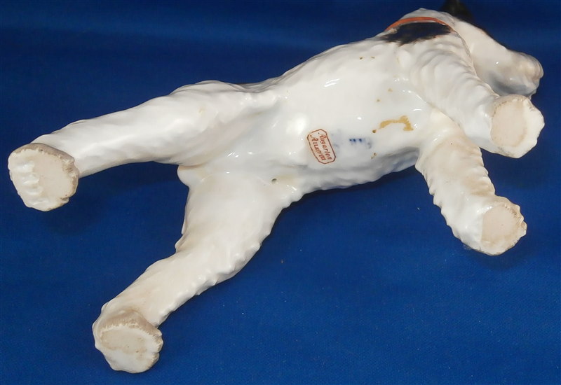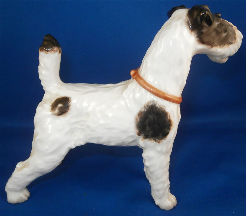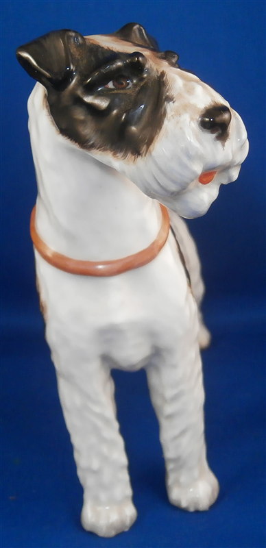 This is a figurine of a Terrier made by Augarten during the original period in the early 20th century. It is the version wearing a collar which is harder to find and a bit bigger than the other version. He is 5 inches tall, 2.5 inches wide and 5.375 inches long. The dog is in perfect condition. Marked underneath with the blue shield with the crown on top as well as the word Wien underneath as well as the words Augarten Austria in red in a rectangular box. The model number is impressed under one of his feet! A rare goodie from the original period much better than the later versions! Please email me for more information or photos.