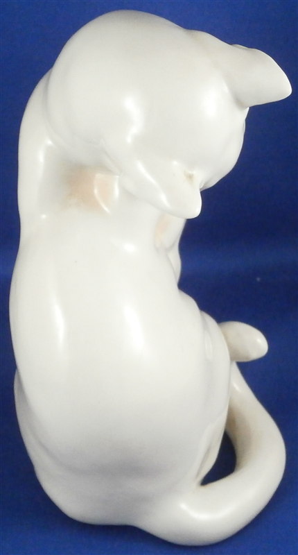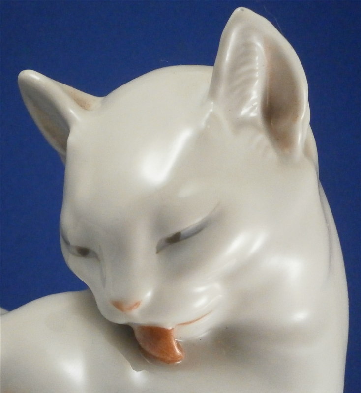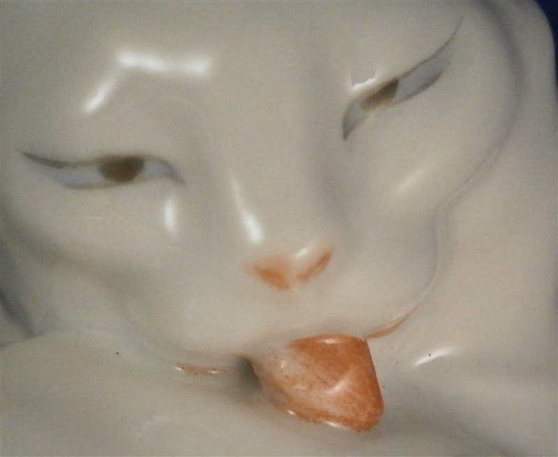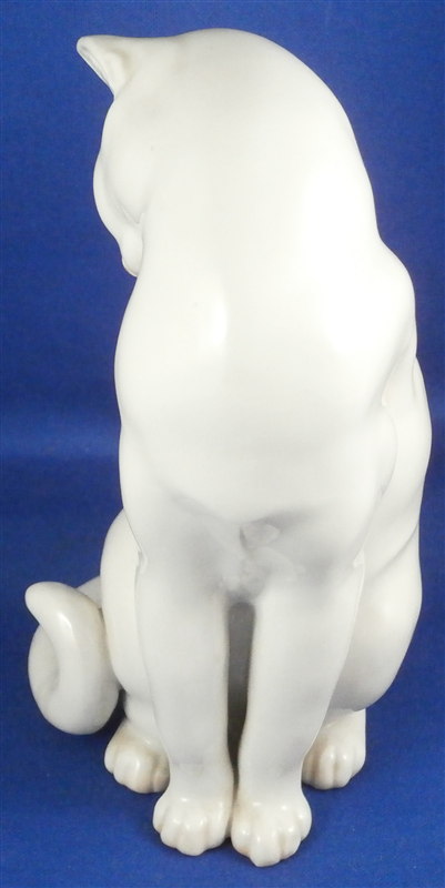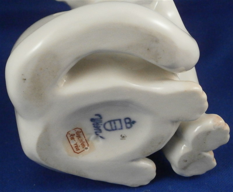 This is a figurine of a cat made by Augarten during the original period when it was first modelled. In all my years of looking at this model I ahve not seen one from the Original period! Superbly modeled and painted just enough to make it one elegant figure . She is 5.625 inches tall, 3 inches wide and 3.5 inches deep. The cat is in perfect condition which is always nice. Marked underneath with the blue shield with the crown on top as well as the word Wien underneath, black painter's number 31, impressed number 1674, as well as impressed Augarten Austria in a red rectangle. Please email me for more information or photos.