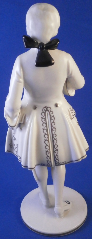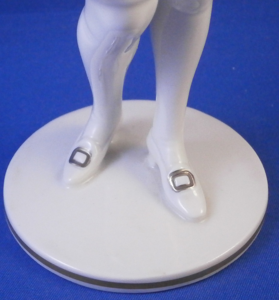 This is a nice figurine of a gentleman made by Augarten in the 20th century. The figure is nicely modeled with him holding a rose in one hand and the other hand on his sword. The figurine is called Rosenkavalier in German which would translate to The Knight of the Rose and is based on an opera from around 100 years ago. Not a rare figurine but this version with the elborate trim to the coat is much less common than any other version! Nicely hand painted. In superb condition with maybe the tiniest of nibbble to the rose petals but I cannot see any. He displays perfectly! The figurine is 7.75 inches tall with the base having a diameter of 2.625 inches. Marked underneath with the under glaze blue shield with the crown on top as well as the word Wien underneath, impressed Made in Austria and the letter S, Augarten Wien Austria in red, painter's number 203 in black and the model number 1500 I believe though it is hard to read. Please email me for more information or photos.
