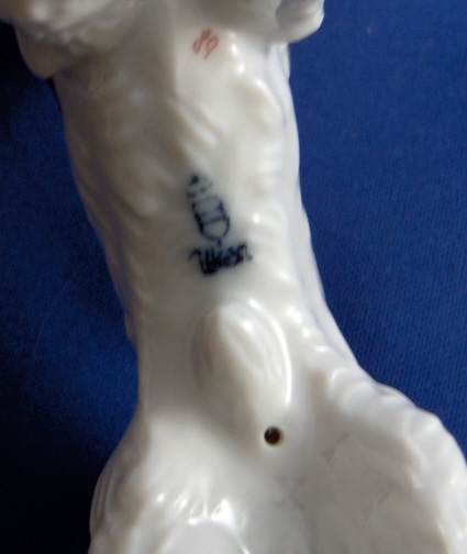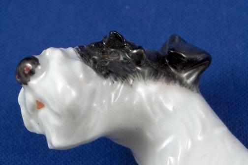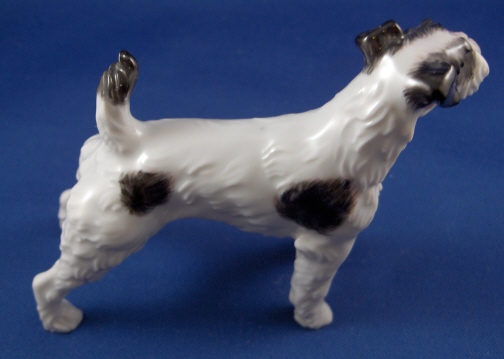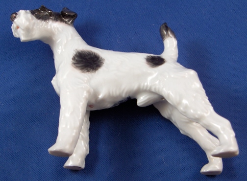 This is a figurine of a Terrier made by Augarten around 1950. He is 3.5 inches tall, 4.5 inches wide and 2 inches deep. The dog is in perfect condition. Marked underneath with the blue shield with the crown on top as well as the word Wien underneath, a red number 89, impressed letter X, as well as Made in Austria impressed. Please email me for more information or photos.