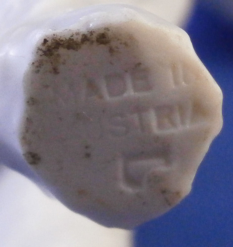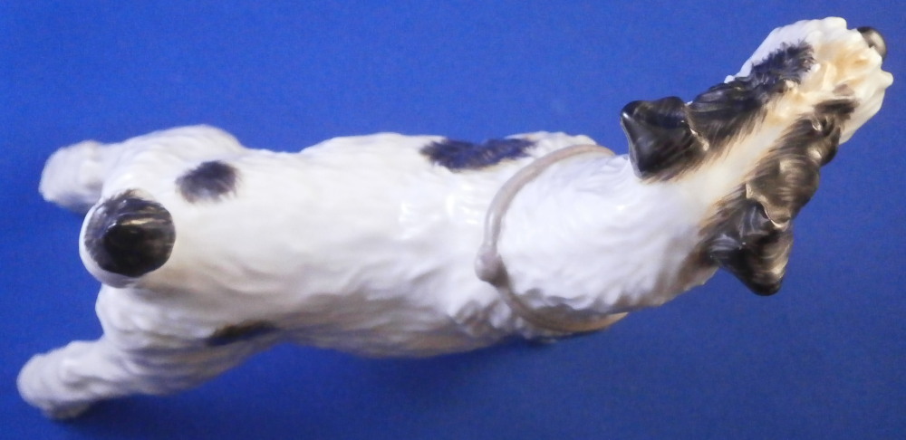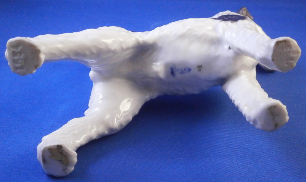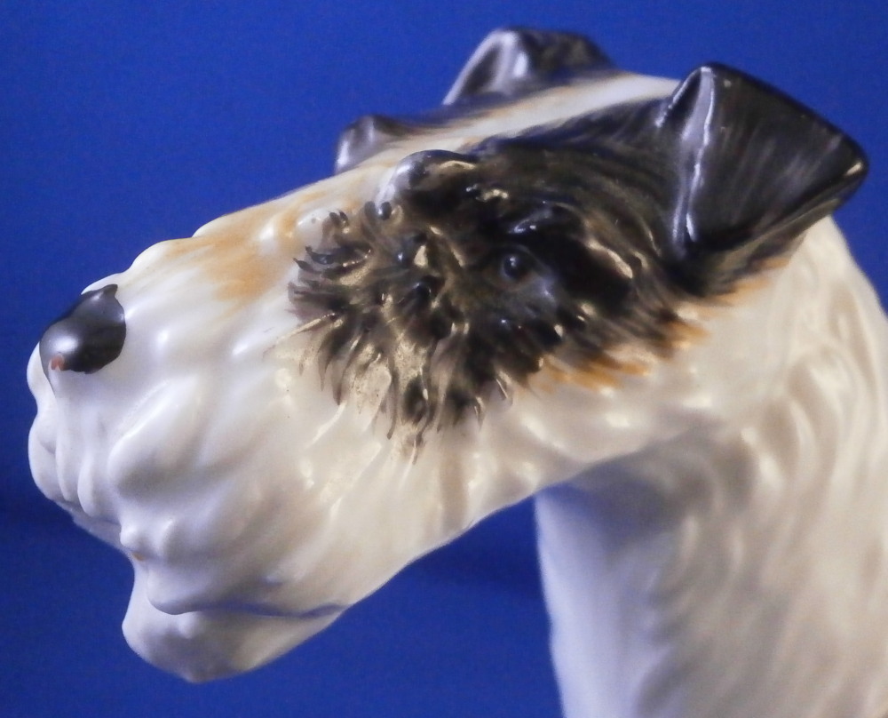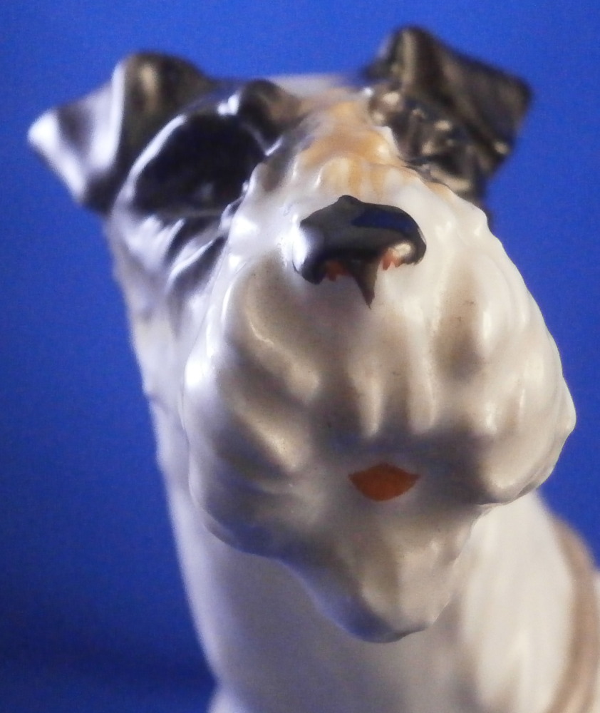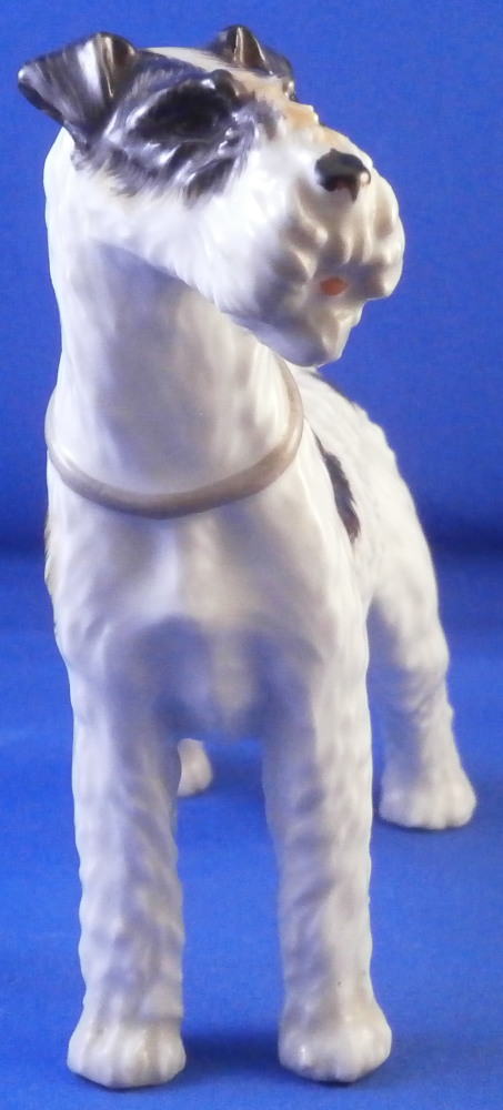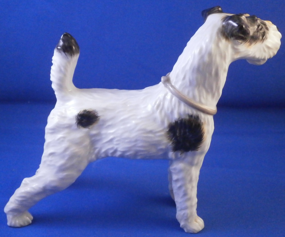 This is a figurine of a Terrier made by Augarten during the original period in the early 20th century. It is the version wearing a collar which is harder to find and a bit bigger than the other version. The dog is superbly modeled with lots of detail and hand painted really nicely! He is 5 inches tall, 2.375 inches wide and 5.375 inches long. The dog is in perfect condition. Marked underneath with the blue shield with the crown on top as well as the word Wien underneath, painter's mark 30, the model number is impressed under one of his feet and Made in Austria and the letter L under another! A really nice figurine! Please email me for more information or photos.