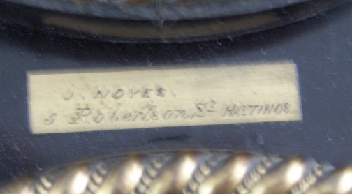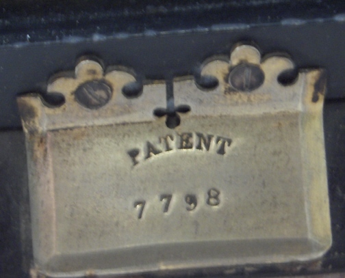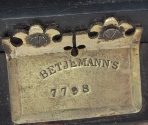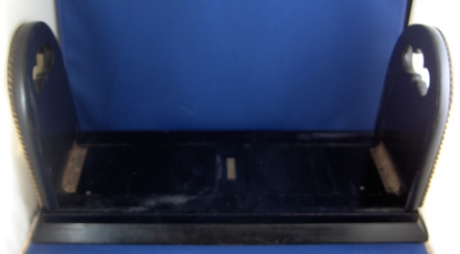 This is a book slide made by Betjemann's in England around the mid to late 19th century. It used to have a self closing mechanism which is missing some sort of rope like part as far as I can tell but the wheels are there, etc. Two hinged flaps - one on either side - are mounted with brass rope molding around the edge and a porcelain plaque with a handpainted angel scene on each which appear to be of French origin. Brass manufacturer's plate as well as patent number 7798 plate and in the center what appears to be the name and address of its original owner. Victorian era luxury items like this combined the newest inventions with the best artistic trends of the period to make some really fun items like this! The piece is in great condition with some wear from use but nothing that makes you cringe by any means :) There is one dent on the top edge of the black laquered base. The screw on the bottom of the left side hinge seem to be newish. The piece is 15.5 inches long, 6.5 inches deep and 7.5 inches tall when open. It can be extended to 24 inches. Looks like the velvet underside used to be more reddish in color but has faded over time. Please email me for more information or other pictures.