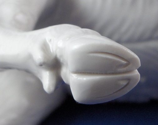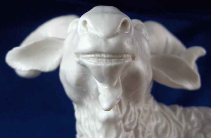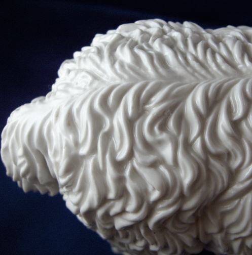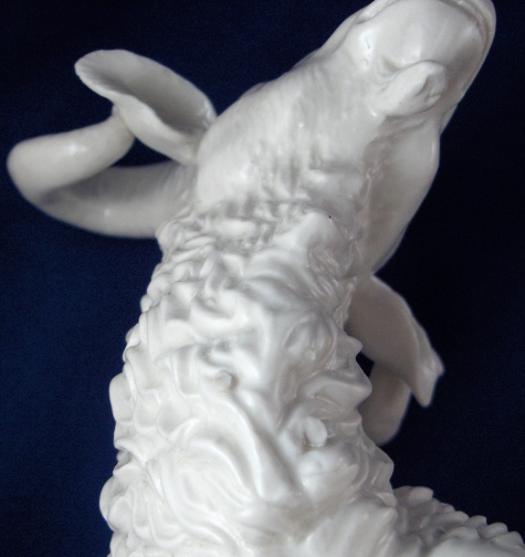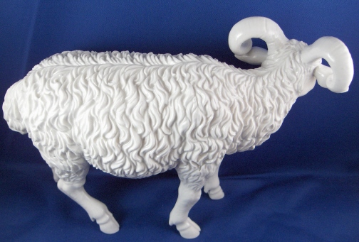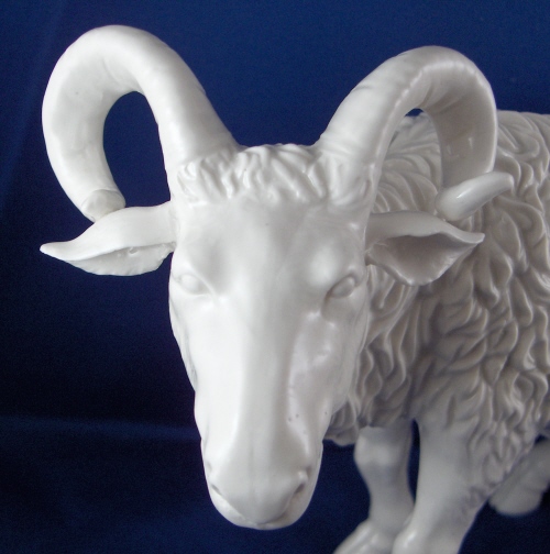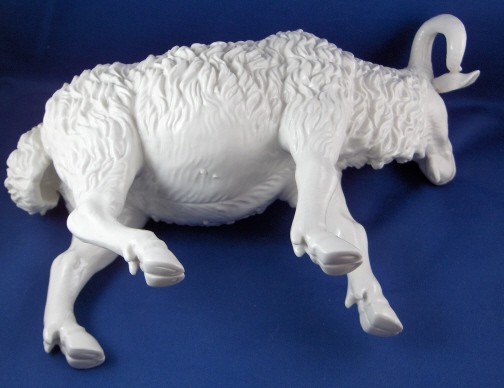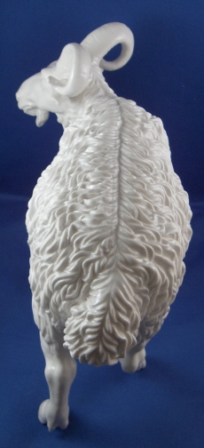 This is a superb figurine of a fat-tailed sheep likely made in Germany in the late 18th to mid 19th century. Fat-tailed sheep are a delicacy for the tail end in the Middle-Eastern world. Sadly the figurine is unmarked and this makes a perfect attribution very difficult but the sheep is of superb quality and the modelling is exceptional which certainly makes it stand out from the crowd. The fur is superb and it even has teeth and the underside of the hooves. The figure is 7.25 inches tall, 10.25 inches long and 4.5 inches wide. It is in perfect condition with the old supports from the firing process still showing where they were broken off underneath the belly and neck. An amazing animal figurine. Please email me for more information or photos.
