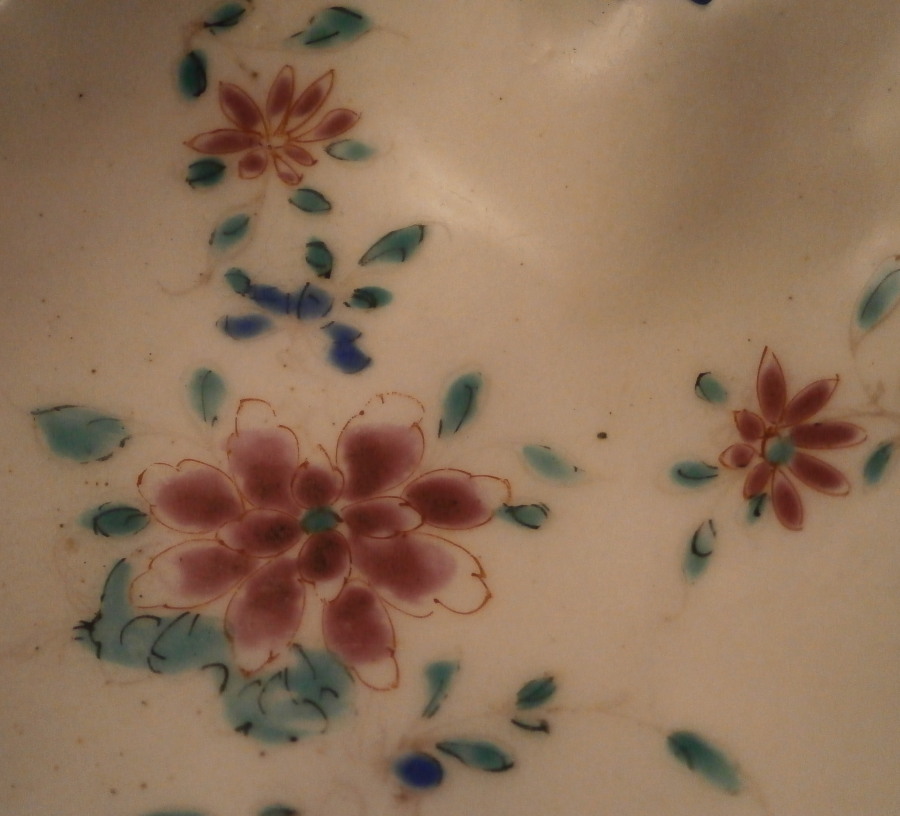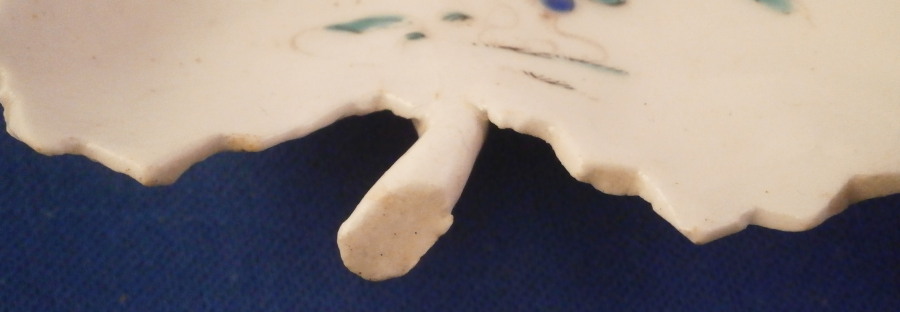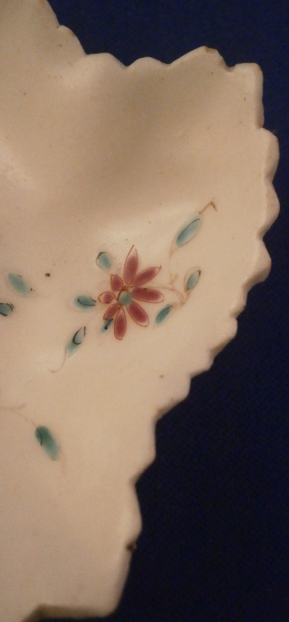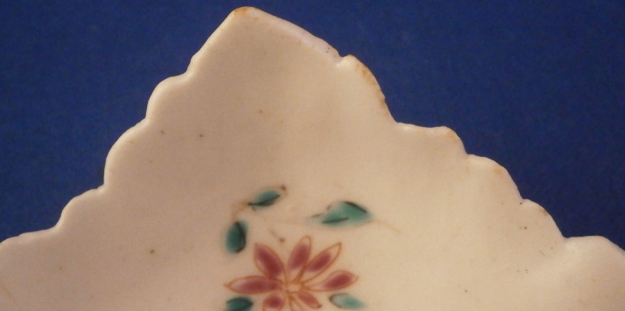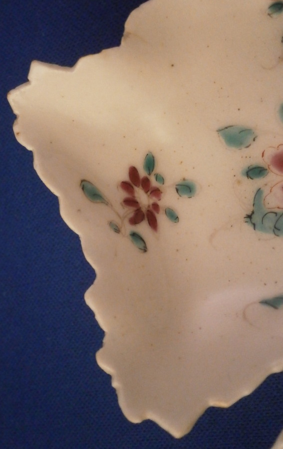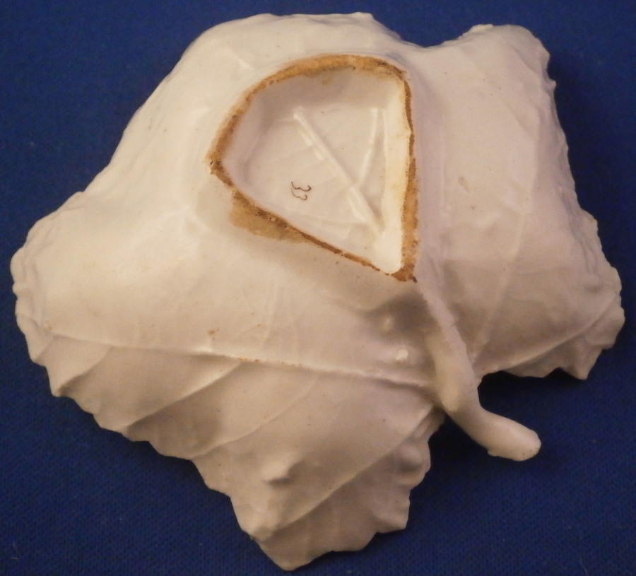 This is a fun polychrome leaf shaped dish made by Bow in the mid 18th century - about 1750 plus or minus 2 years. A nice early piece likely used as a pickle dish. Polychrome pieces from this period are pretty hard to find and this one has lots of charm and looks superb. Nice leaf shape with serrated edge, stem to its end and underside molded veins. The dish is hand painted with a colorful design based on the Chinese Famille Rose in the center in pink, turquoise and blue tones. Really a stunning look for a nice early piece from this maker! The dish is in superb condition with some very tiny nibbles to the edge, so small that I couldn't tell you where they are and a tiny hairline to one spot less than 0.25 inches long as shown. It displays perfectly! The dish is marked underneath ith a number 33 as shown. Unusual and likely a workman's mark. It is 1.25 inches tall, 3.375 inches long and 3.635 inches wide. Please email me for more information or other pictures.