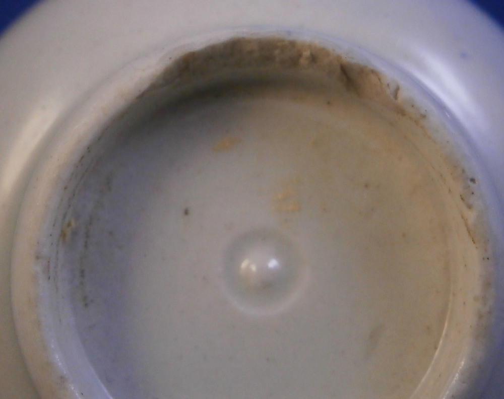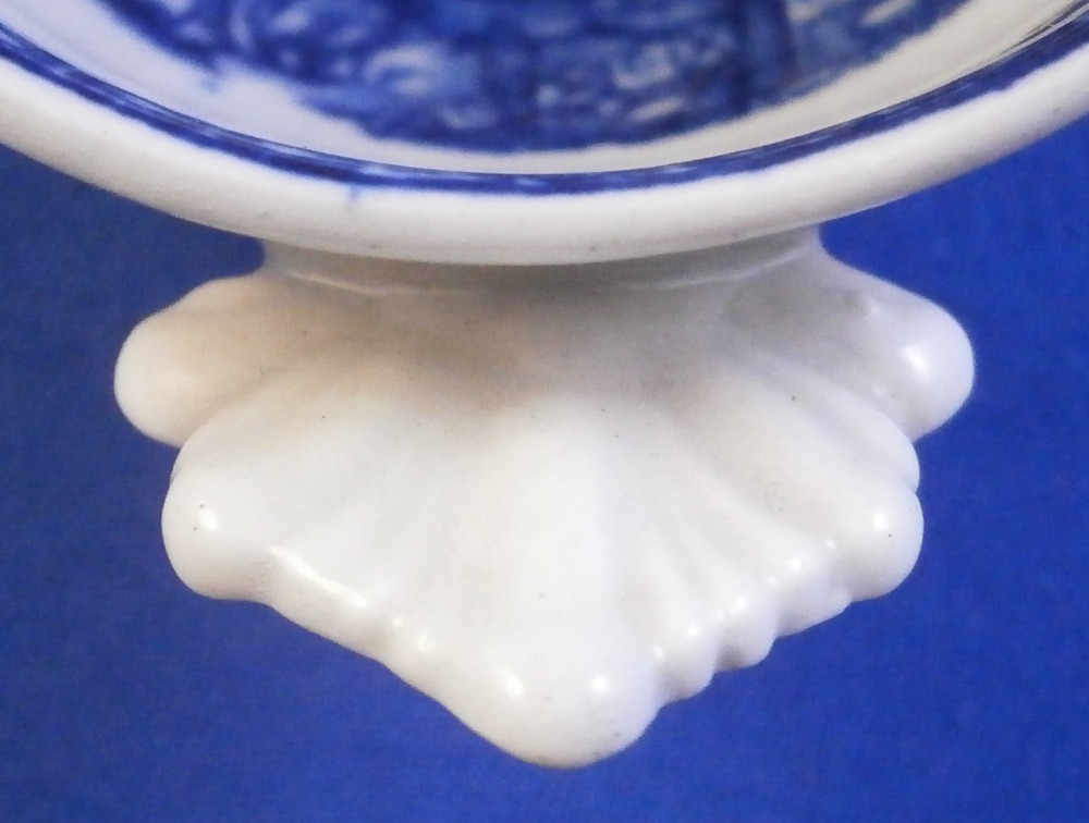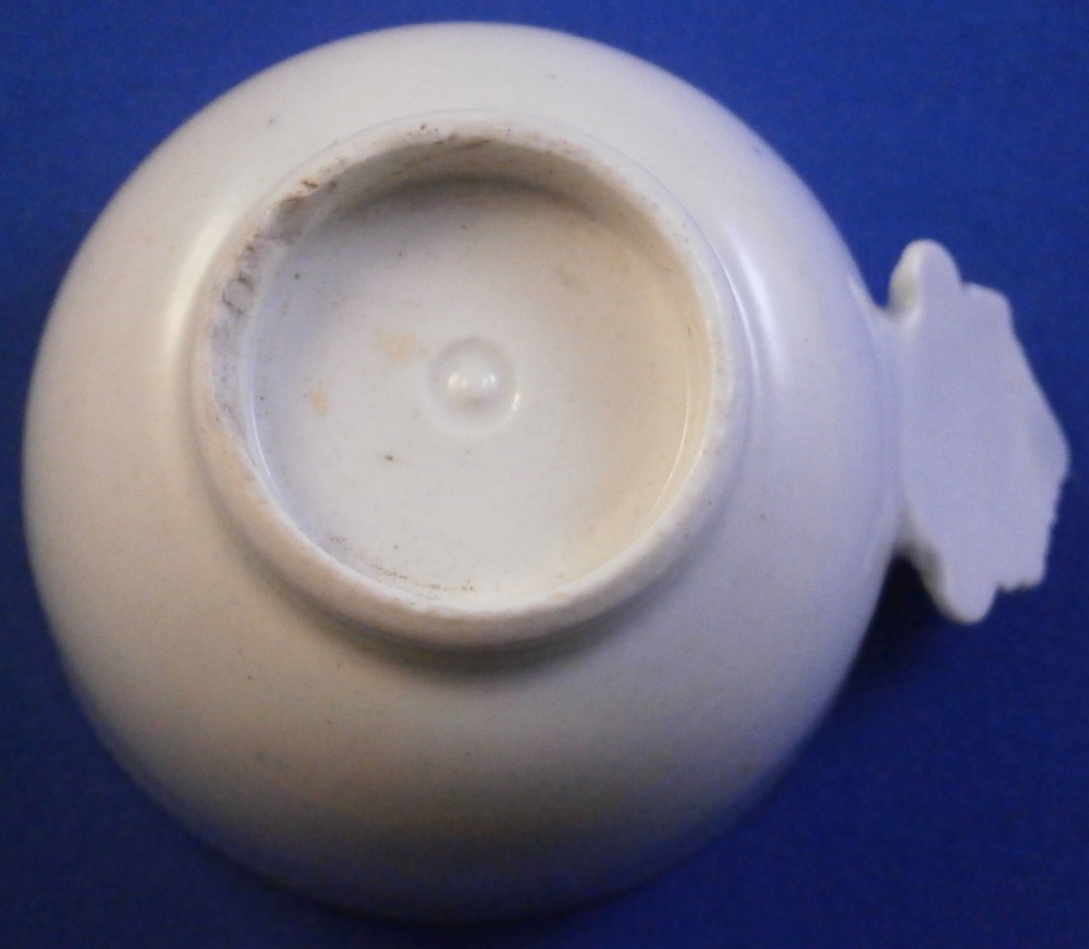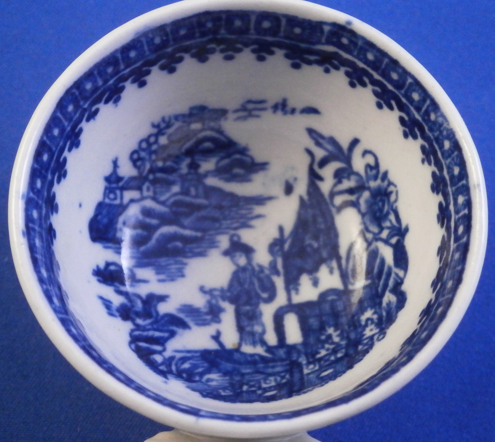 This is a hard to find wine taster or measure cup made by Caughley around 1775. It is superbly decorated with an under glaze blue printed Fisherman / Pleasure Boat pattern with a nice rim trim. Molded leaf handle to one side. A really nice looking piece and I lvoe the size of it. Takes up less room in my cabinets than most porcelain pieces :) The piece is in great condition with just some damage to the inner foot ring which does not show when it is sitting on a table. It is just 1.25 inches tall and has a diameter of just under 2.25 inches with the handle sticking out another 0.5 inches. It is not marked underneath but is an easy to indentify maker with this pattern. Please email me for more information or other pictures.