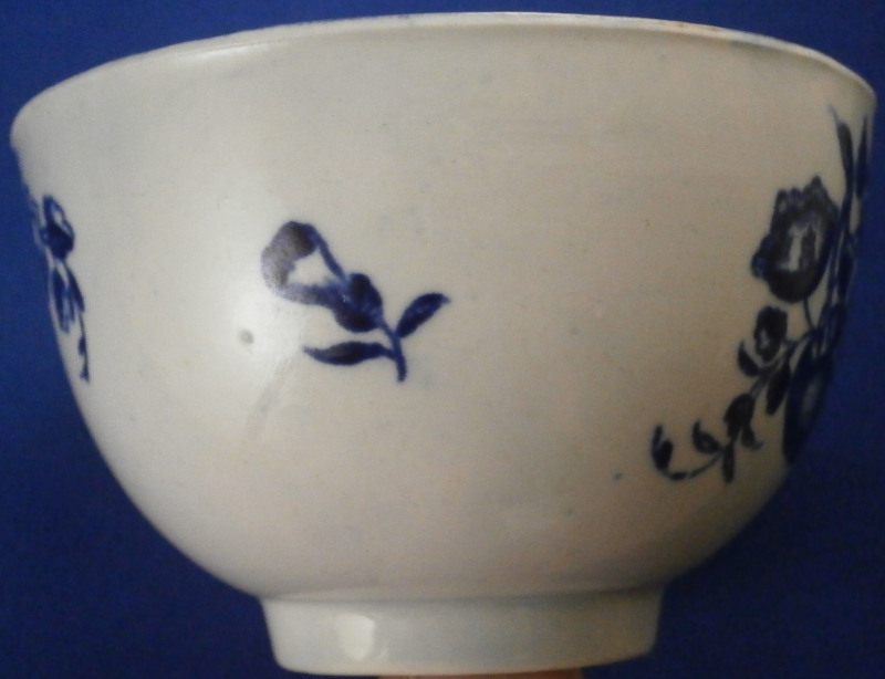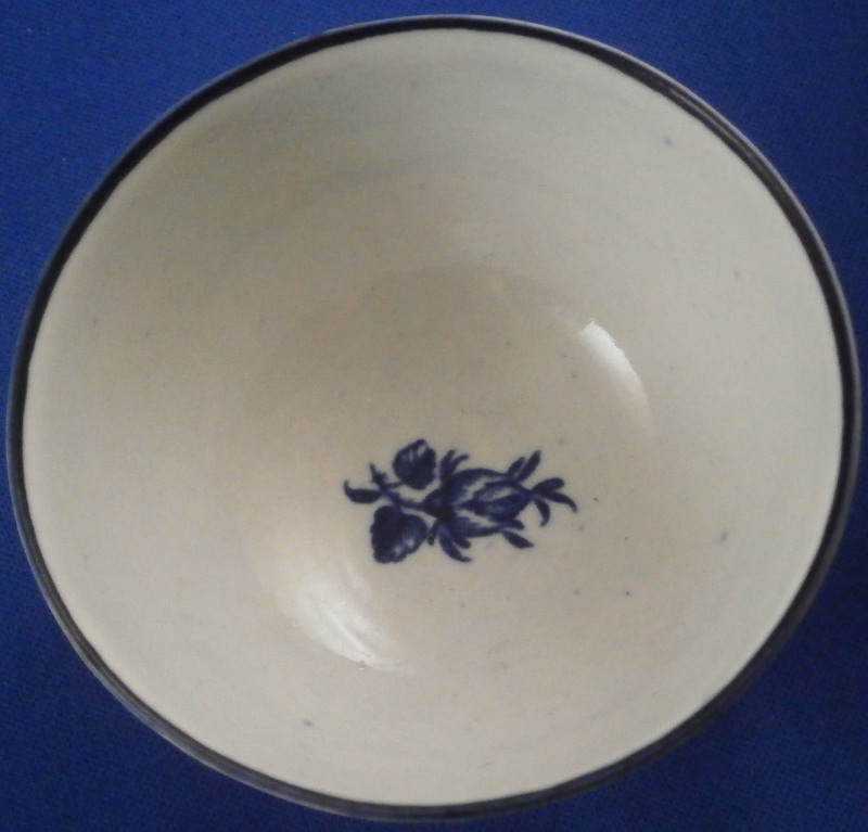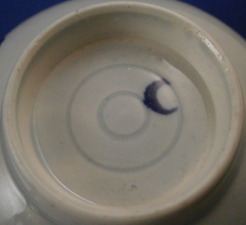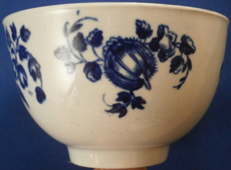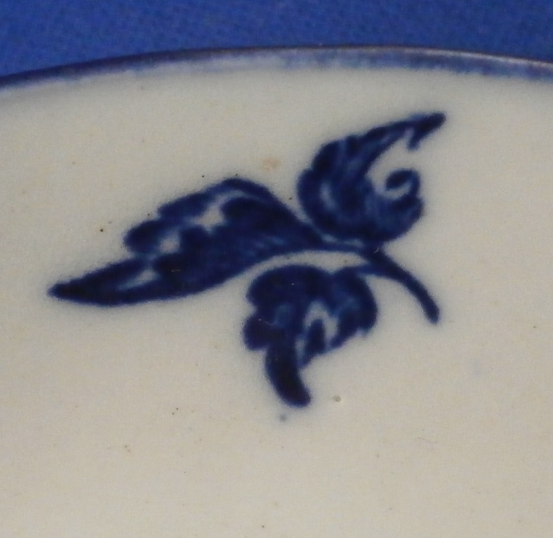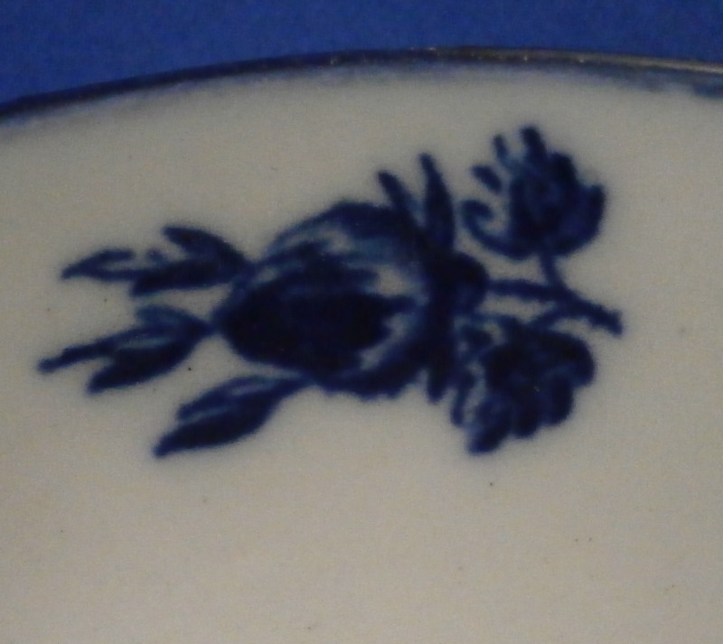 This is a tea bowl style cup and saucer made by Caughley in the 18th century. Both pieces are decorated in under glaze blue with a fruit scene pattern - I have seen this being called the Sliced Apple as well as the Apple and Damson pattern. Either way the two piece look superb with the deep blue decoration of flowers and fruits with a blue trim to the edge. The set is in perfect condition which is always amazing on pieces that are over 200 eyars old. The saucer is not marked but the cup has the blue crescent mark to it as shown. The cup is just over 1.875 inches tall and 3 inches in diameter. The saucer is 1.125 inches high and has a diameter of 4.75 inches. Please email me for more information or other pictures.