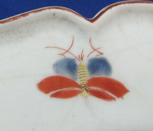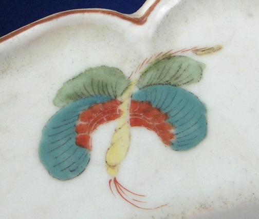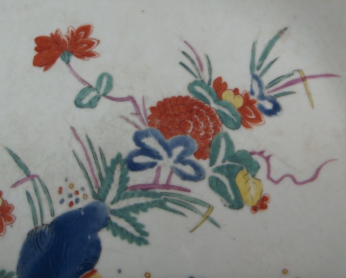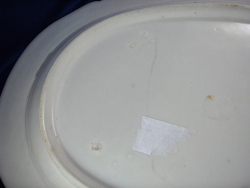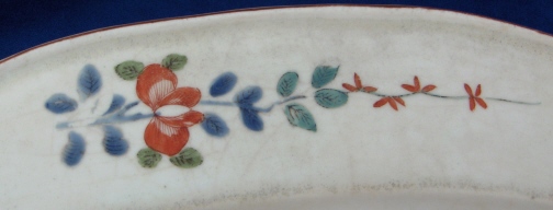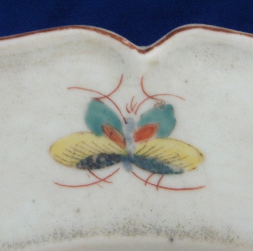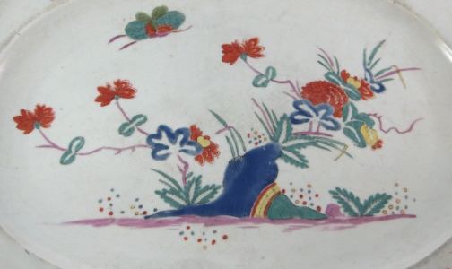 This is a supremely rare platter made by Chelsea around 1750. It is made of softpaste porcelain and handpainted with a Kakiemon design which is rare in itself but the platter is rather large which was not easy to do by any means with softpaste porcelain! The platter has a wavy edge and is handpainted with a flowering plant of some sort in the center and some floral designs and bugs on the rim in red, turquoise, blue, purple and yellow in imitation of Japanese kakiemon porcelain. The rim has a reddish brown trim on it. This piece is extremely well done and amazingly the platter is in pretty much the same condition as the day it was made. No chips, etc but there are some of the typical Chelsea firing issues with the platter having a lot of tiny firing black spots, etc. and some dulling of the design - not sure if it was made this way or just happened over time. This does not really take away from this amazing piece whatsoever! The platter is not marked but it has the typical spur marks on the back from firing and the moons when you shine a light through it. The piece is 1.875 inches tall, 15.5 inches long and 12 inches wide. Please email me for more information or other pictures.