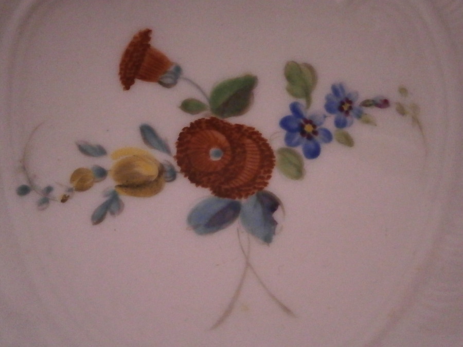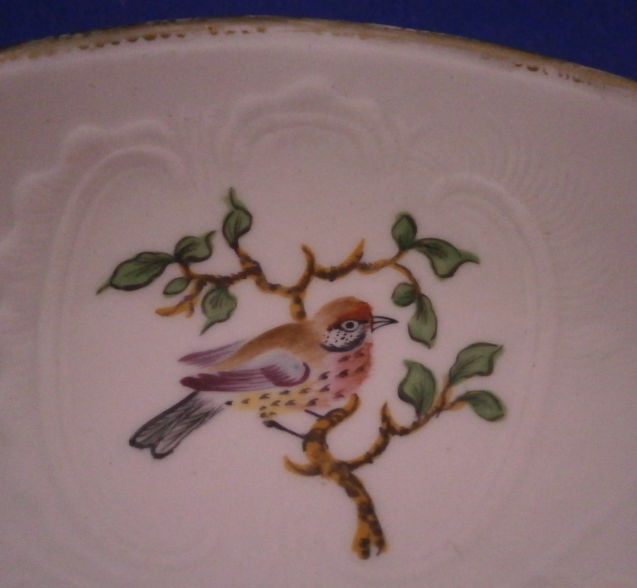 This is a nice dessert dish most likely made by Coalport or possibly Copeland in the early 19th century. It has a nice shape to it and is hand painted with some relief detail to the paste as well as a large flower arrangement in the center, two smaller ones along the edge, two fun bird in a branch scenes and a bit of gold trim. A really nice looking plate! The piece is not marked underneath which is fairly normal still during this period but I am pretty certain is was made by Coalport and definitely in the early 19th century. The piece is in great condition with just some gold wear and a brown firing inclusion under one of the bird scenes and another one on the underside handle from when it was made. The dish is 1.375 inches tall, 8.25 inches wide and long. Please email me for more information or other pictures.