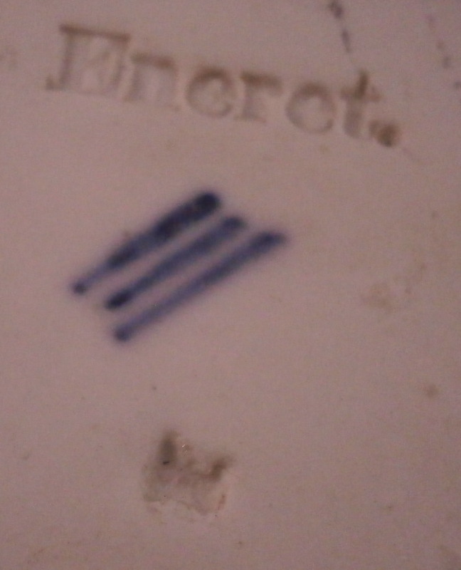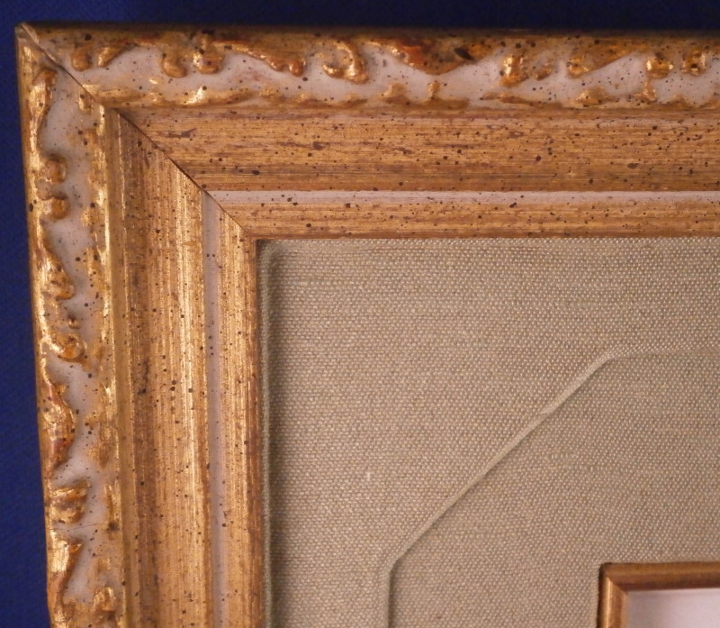 This is an unglazed porcelain or biscuit plaque made by Royal Copenhagen in the mid to late 19th century. A really nice piece and much harder to find than their more usual pieces. It is a relief design of Cupid / Amor hugging a dog. He has his cherub wings and the bow and quiver full of arrows behind him. A nice early piece and it is superbly framed. Looks stunning on the wall. The outer frame is gilded wood with an antique look to it, the nicely shaped matte is a green rough silk type material and there is a little gold and red inner frame right around the plaque. The plaque itself is about 4.75 inches wide and 3.5 inches tall. The entire frame is 10.5 icnhes wide, 9.25 inches tall and about 1.5 inches thick. The back of the porcelain is marked with the three wavy blue lines mark as well as the impressed Eneret. mark as well as an impressed letter I cannot make out. Ready to hang on the wall and look great! The piece is in great condition - the plaque could use a bit of a cleaning and the frame has a few very tiny nicks. It displays perfectly! Please email me for more information or other pictures.