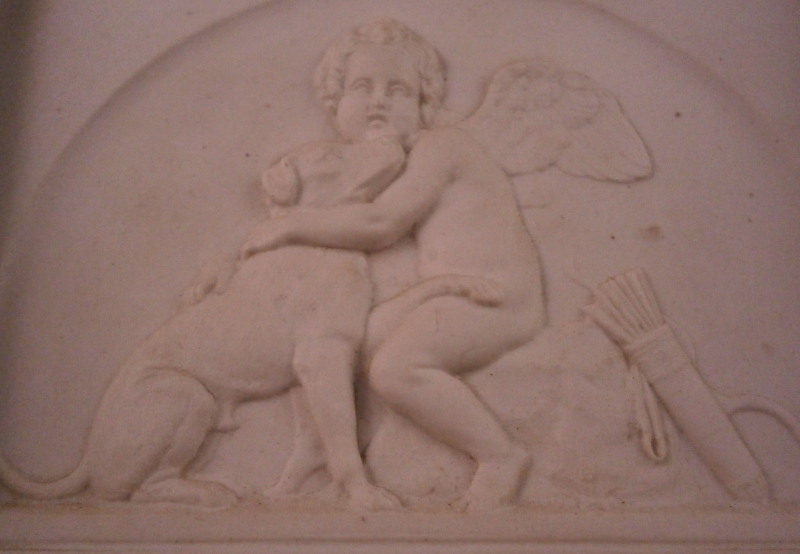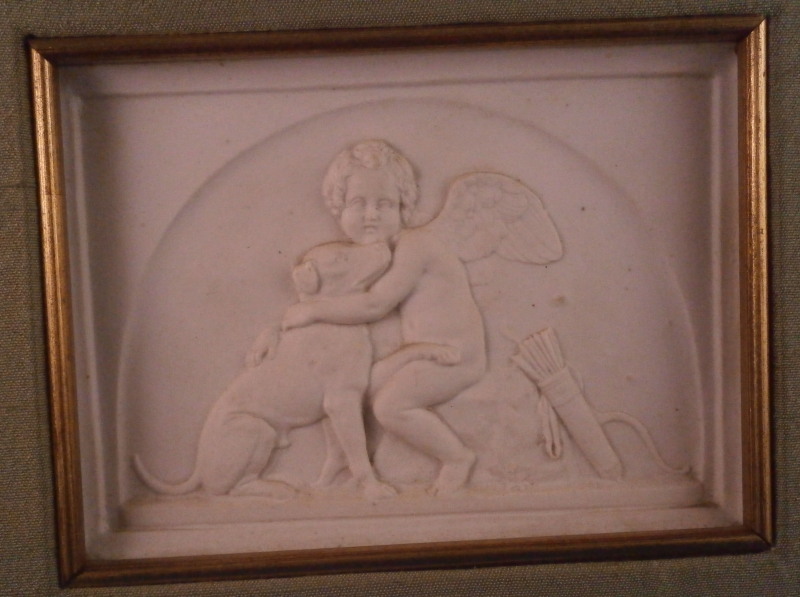 Royal Kopenhagen Framed Cupid w/Dog Plaque