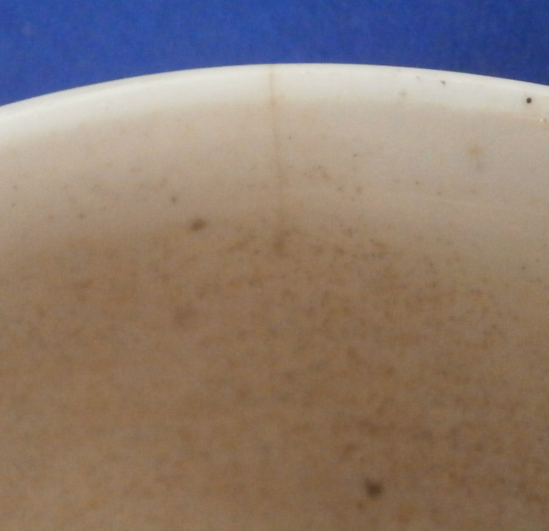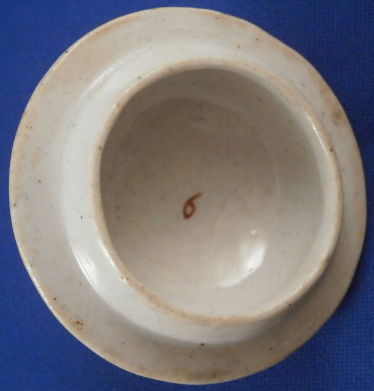 This is a pot de creme with its lid / hot chocolate cup / custard cup made by Cozzi around 1770. A very cute little cup that is hand painted with polychrome flowers - a larger arrangement to the one side with smaller flowers to the other and the lid. Typical handle shape and a little finial painted with an iron red design. The cup and lid are made of soft paste porcelain in Venice . The piece is in OK condition with a short hariline crack as shown and staining to the inside and outside. The top rim didn't quite hold up in the firing process and got uneven and alrger so the lid is very loose and actually a tiny bit smaller than the bottom piece itself though it sits on top and looks fine on display. Some chipping to the finial petals. The cup with its lid is 2.75 inches tall and 2.5 inches in diameter. Both are marked underneath - the cup with a red number 12 and the lid with a red number 6. Please email me for more information or other pictures.