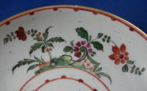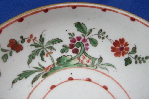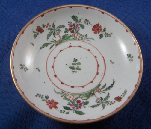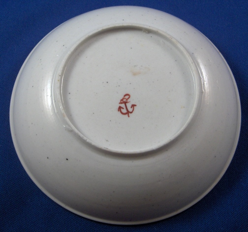 This is a saucer made by Cozzi around 1770. The factory made soft-paste porcelain in Venice and was founded by Geminiano Cozzi in 1764. It closed in 1812. The saucer is handpainted nicely with a colorful pattern very typical for Italian porcelain. Nice red trim and gold trim to the edge. The saucer is in perfect condition with one spot of wear to the gold trim. It has a few black firing marks common to early porcelain. The saucer is 1 inch tall and 4.5 inches in diameter. It is marked underneath with the red anchor mark. Please email me for more information or other pictures.