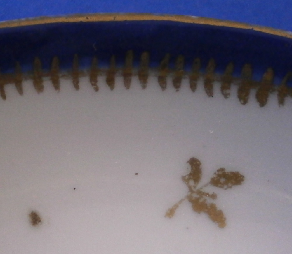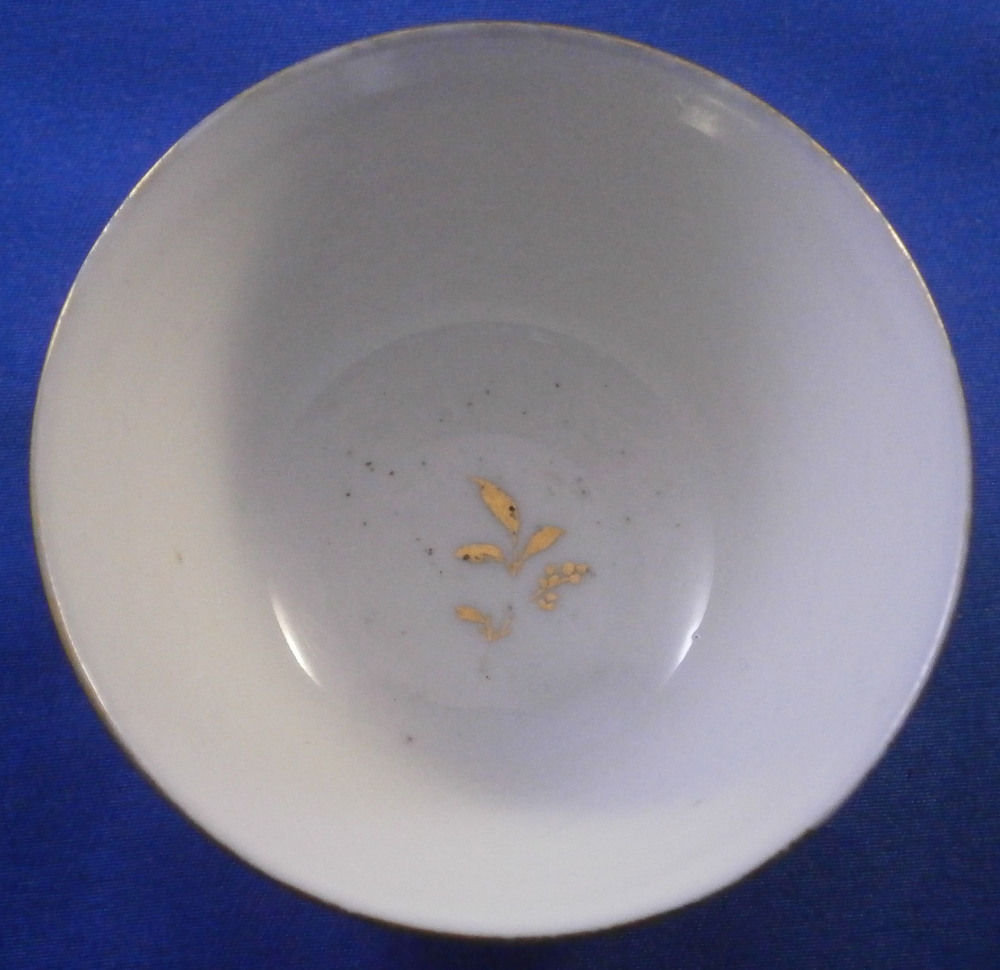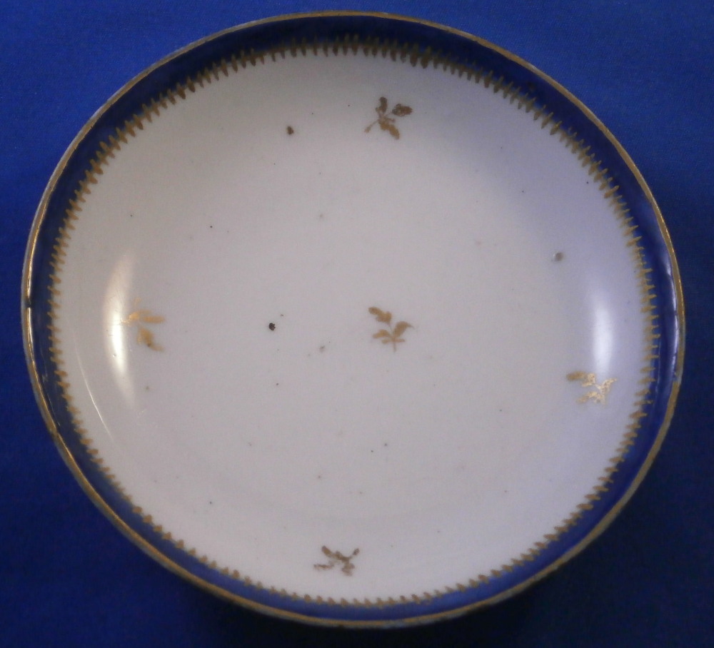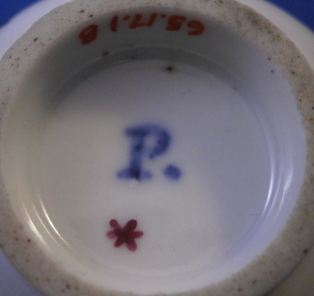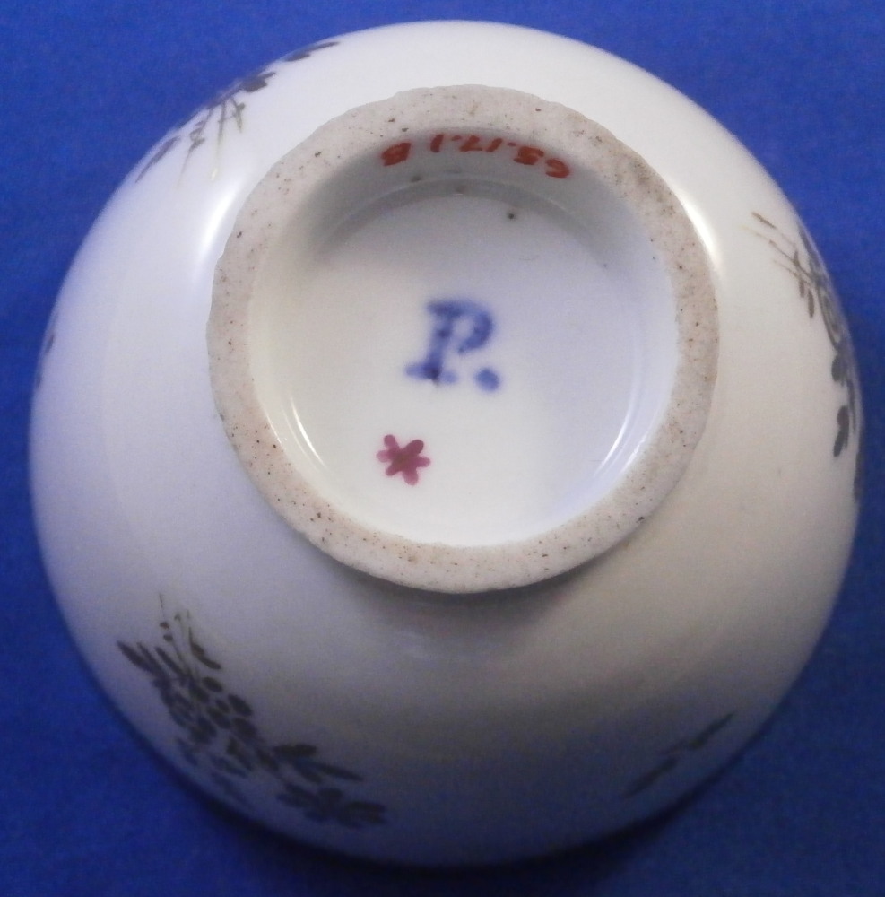 This is an interesting cup made by an unknown Italian maker and a saucer made Cozzi. A great match but still a match. Both definitely made in the 18thc entury. Both are hand painted with a very subtle design for the color loving Italians :) Just a nice gold floral design with a blue and gold trim. Simple leaves to the saucer and floral arrangements to the cup. Simple yet very elegant! There is even a flower in the bottom of the cup which is a sure sign of quality. The set is in great condition with just a touch of wear to the gilding and some firing inclusions to the saucer. The cup is just under 1.625 inches tall and 2.625 inches in diameter. The saucer is 0.875 inches tall and 4.375 inches in diameter. The saucer is marked with Cozzi's usual red anchor mark but now to the interesting part. The cup has a puce star mark as well as an under glaze P. mark. I could not find anything like it in any of my books or online searches. Definitely a very unusual mark. If I had to guess I'd say Doccia is a likely candidate but LeNove and Venice also used a star mark so they could also have made it. Or even another maker!? No idea but definitely italian from this period. Some old museum IDs underneath as well. Please email me for more information or other pictures.