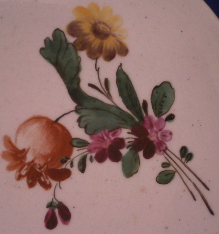 This is a nice saucer made by Cozzi in Venice in the 18th century. Nicely hand painted with a floral arrangement in the typical colors and style as well as a smaller single flower and some leaves. Not something you find often as Italian porcelain is quite hard to find. The piece is in great condition with some black firing specs from when it was made and a tiny bit of wear to the orange flower. The saucer is 0.875 inches tall and 4.5 inches in diameter. It is unmarked but definitely Italian from this period and Cozzi fits the best. Please email me for more information or other pictures.