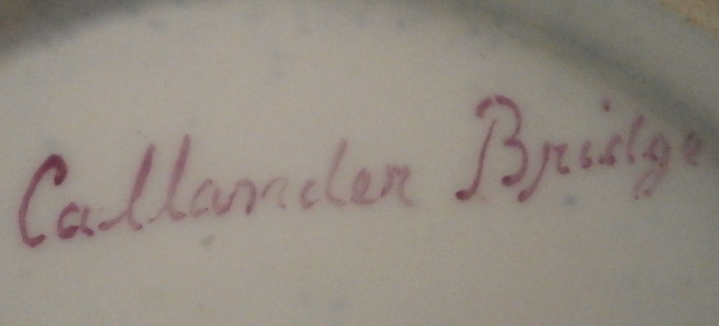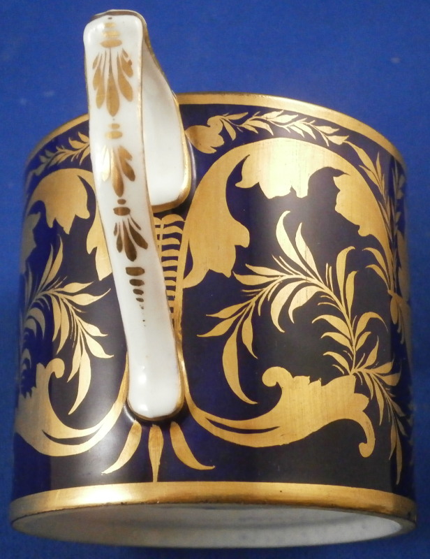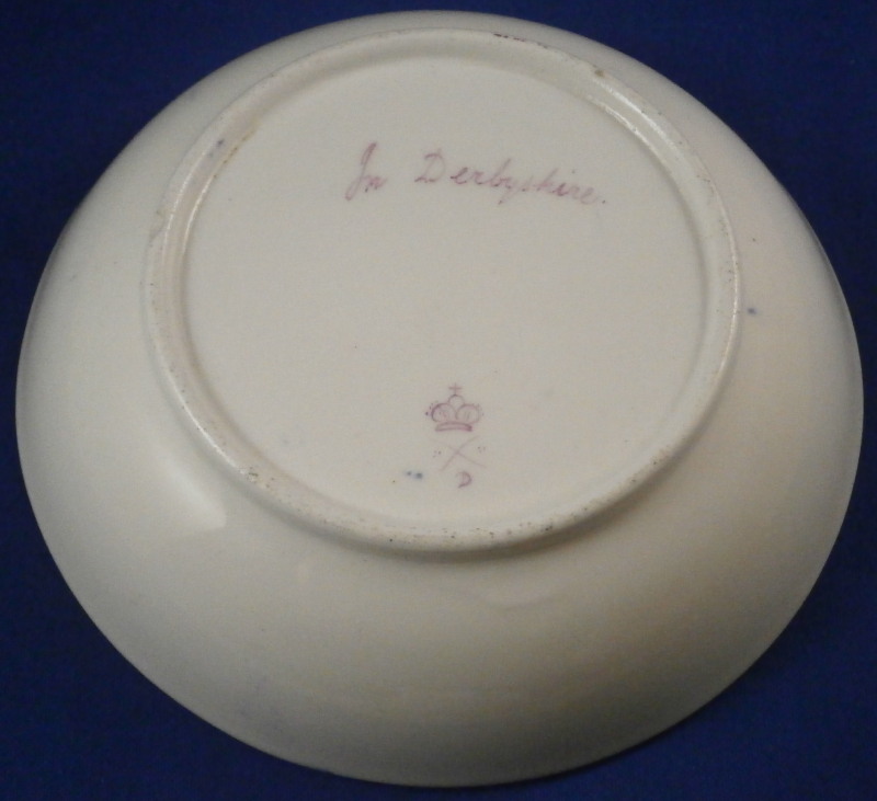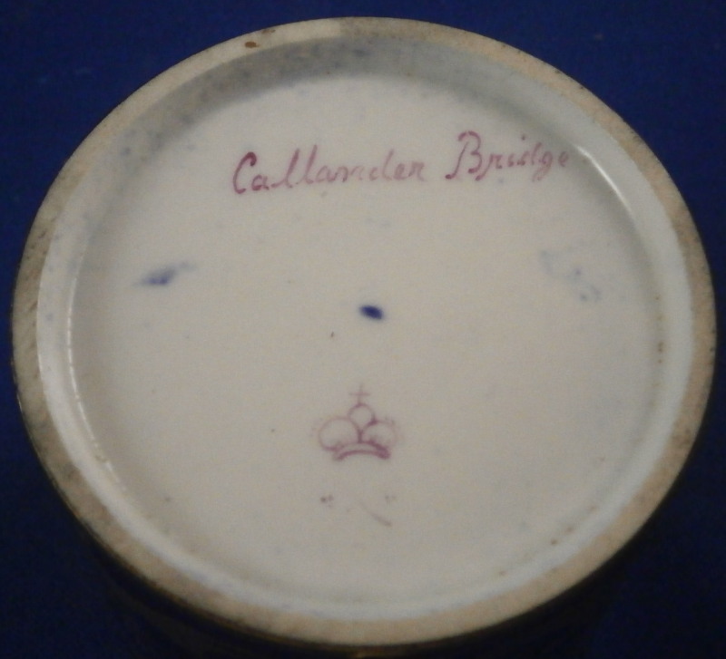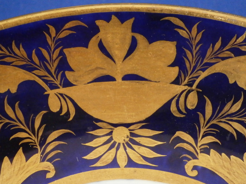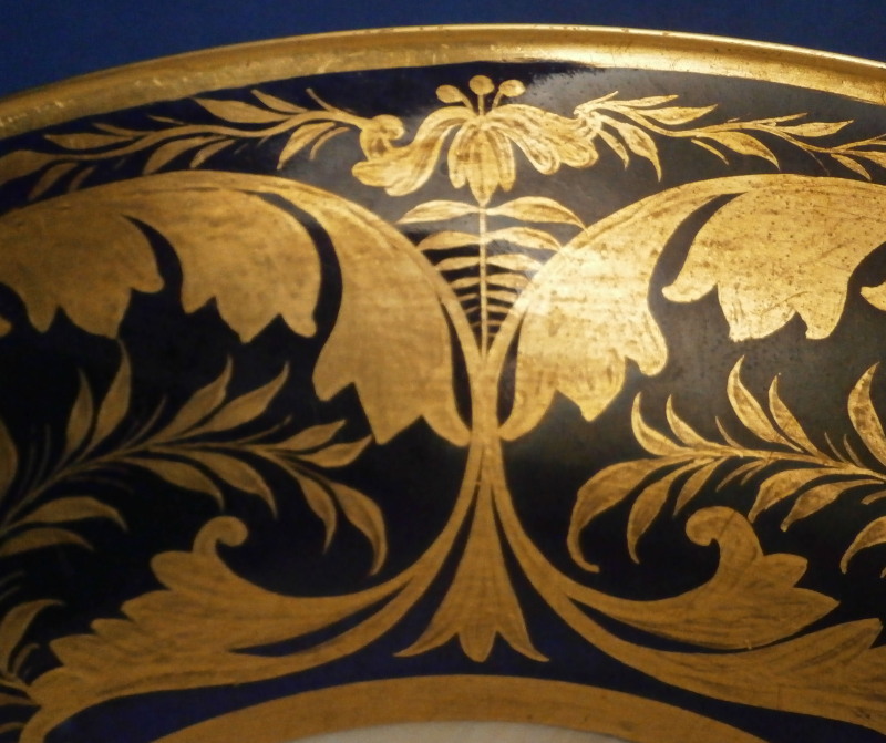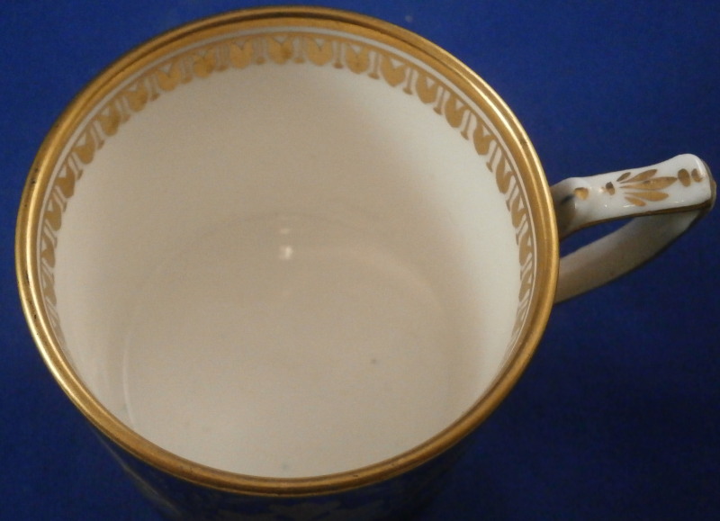This is a really nice cup and saucer made by Derby in the late 18th century. Both pieces have a deep blue ground color with some nice fancy gilding over that and a hand painted scene with a view that is named underneath each piece. Nice handle shape on the cup! The set is in terrific condition for its age with some minor wear to the gold trim which is in much better conditon than almost any I ahve seen before. There is the tiniest of munchers to the foot edge of the cup about 1mm by 1mm which is gilded over and likely from when it was made. A minor foot ring chip to the saucer as shown. The set displays perfectly! Both pieces are marked with the puce crown D mark as well as In Derbyshire on the saucer and Callander Bridge on the cup. The saucer is 1.375 inches tall and 5.5 inches in diameter. The cup is 2.25 inches tall and 2.625 inches in diameter. Please email me for more information or other pictures.