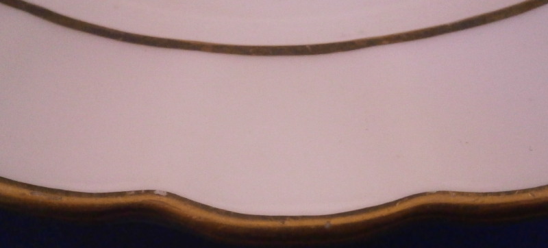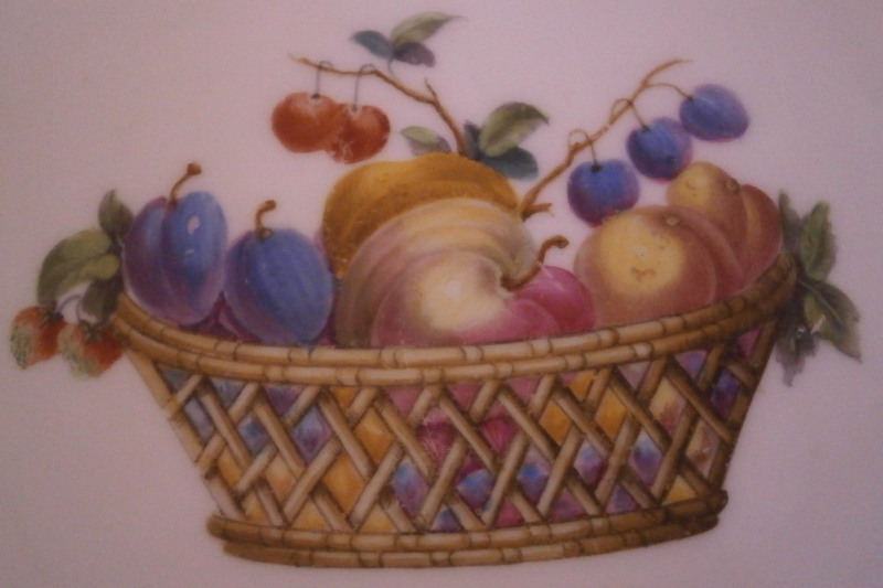This is a great plate made by Derby around 1790. It is hand painted in the center with a scene including a superb basket filled with lots of different fruits, a gold ring around the well of the plate and another to the nicely shaped edge. A fairly minimalistic design but it looks amazing! Really brings out that center scene. The scene was painted by George Complin. and the gilding by the man with the famous 2 gilder's mark quite common to pieces of this period - Joseph Stables . The plate is in great condition with a bit of wear to the gold mostly and some use marks to the center but it displays very well! It is marked with the puce Derby mark as shown. It is 1.125 inches tall and 8.75 inches in diameter. Please email me for more information or other pictures.