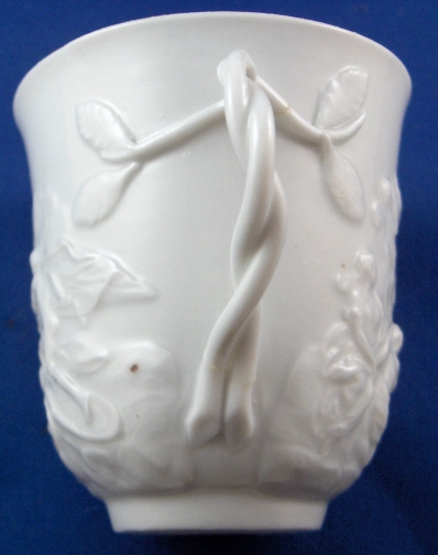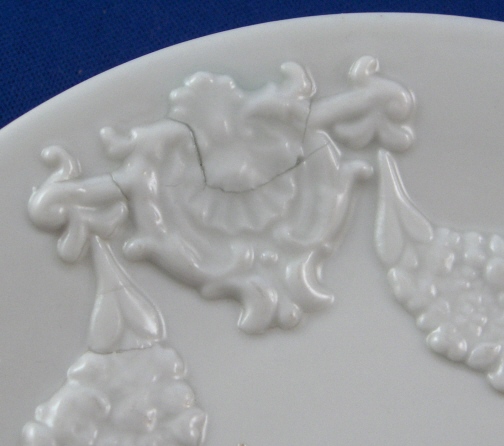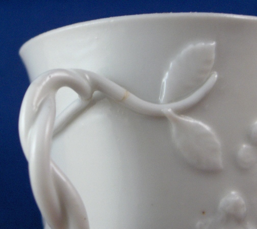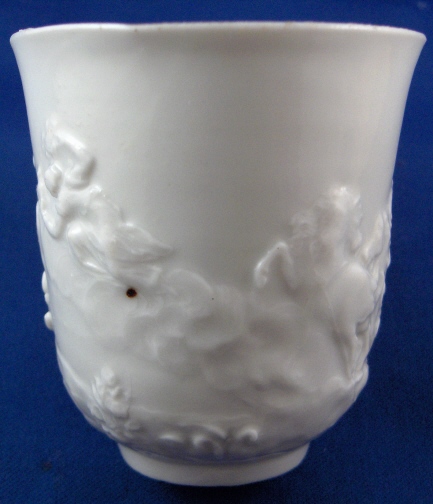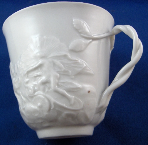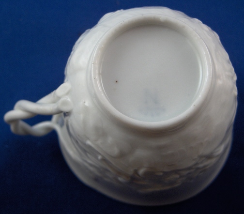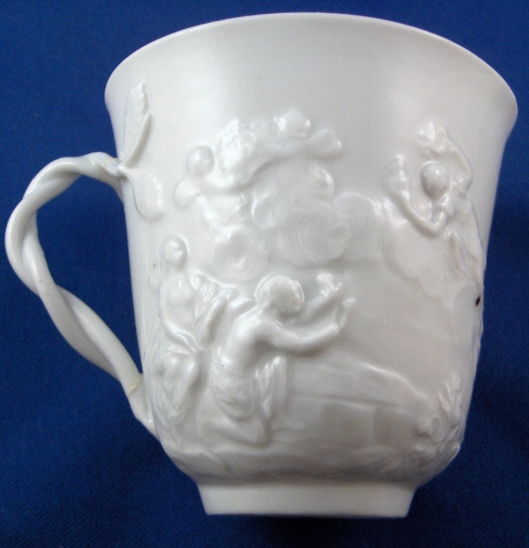 This is another cup and saucer made by Doccia in the late 18th century. I just bought an entire collection of this style design just in case you were wondering! They are quite rare! This is what most people refer to as Capodimonte style with the mythological figures in relief. I don't believe Capodimonte ever actually made this style but Doccia did and made it famous for sure! The cup has lots of figural scenes on it including trees, lots of people and a horse drawn chariot. The saucer is decorated with scroll work and garlands. All this is done in relief and is very detailed. The set is in great condition with some of their typical manufacturing flaws of this period including small cracks that are mostly under the glaze, minor black spots and inclusions. The cup has an extra piece of porcelain stuck inside from the making and the handle was broken off cleanly and reglued plus there are two larger black firing spots on it. It still displays perfectly! The cup is a bit oval shaped from firing. The handle is supposed to simulate twisted branches and was used during the same time the coral type handle was used. The cup is marked with the crown over N mark in underglaze blue (very fainlty) and the saucer is not marked at all which is nothing unusual! The cup stands 2.875 inches tall and 2.75 inches in diameter plus or minus a bit depending where you measure. The saucer is 0.75 inches tall and 5.625 inches in diameter. Please email me for more information or other pictures.