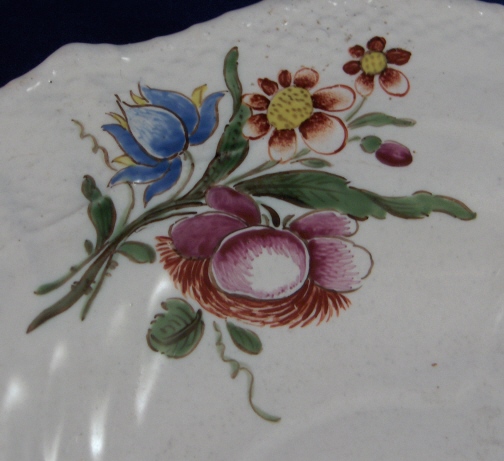 This is a plate made by Doccia / Ginori in about 1770. It is handpainted with detailed flowers in the typical Italian fashion and has a decorative relief design to the entire rim and part of the center. The plate is made with a tin glaze to cover the not so white porcelain paste of the time. This was used around 1770. The plate is in perfect condition with very little wear. It is unmarked except for an incised number 10 but it was the the norm not to mark them. Also some kind of writing underneath but it was added later probably by a previous owner and I can't make out what it says. The plate is 1.25 inches tall and 9.5 inches wide. Please email me for more information or other pictures.