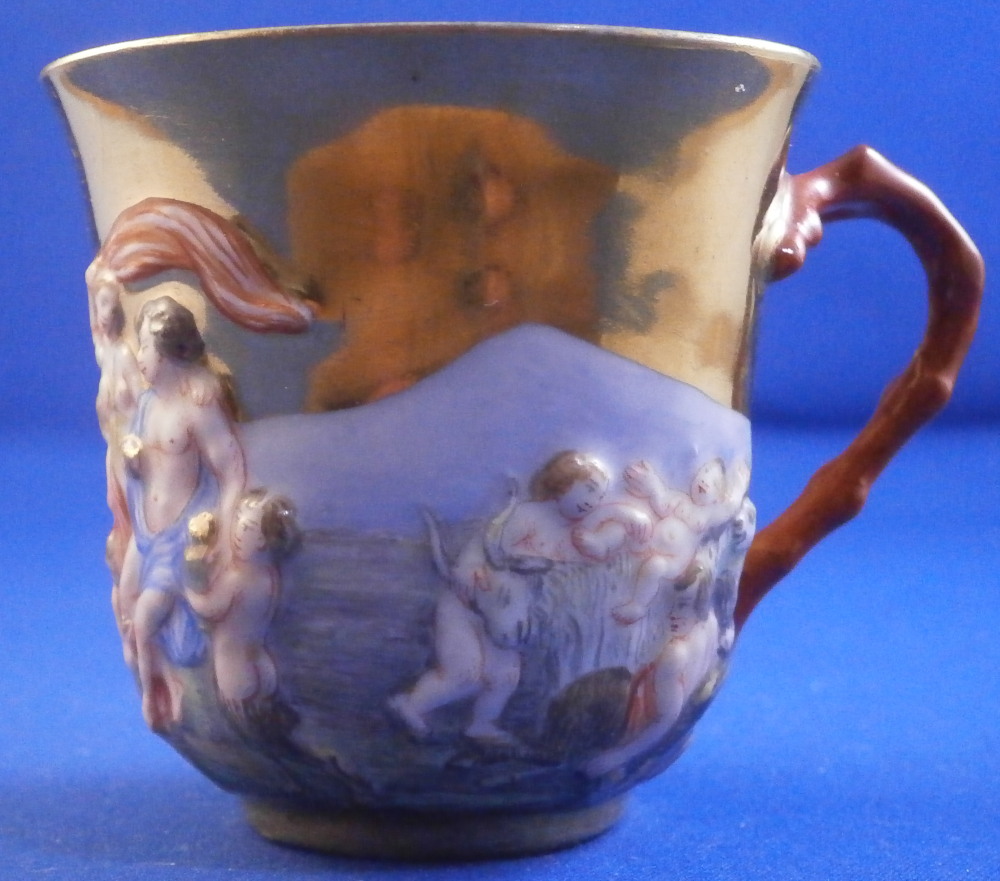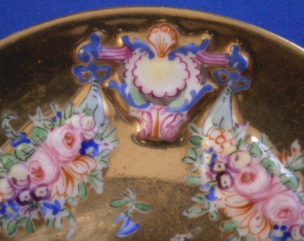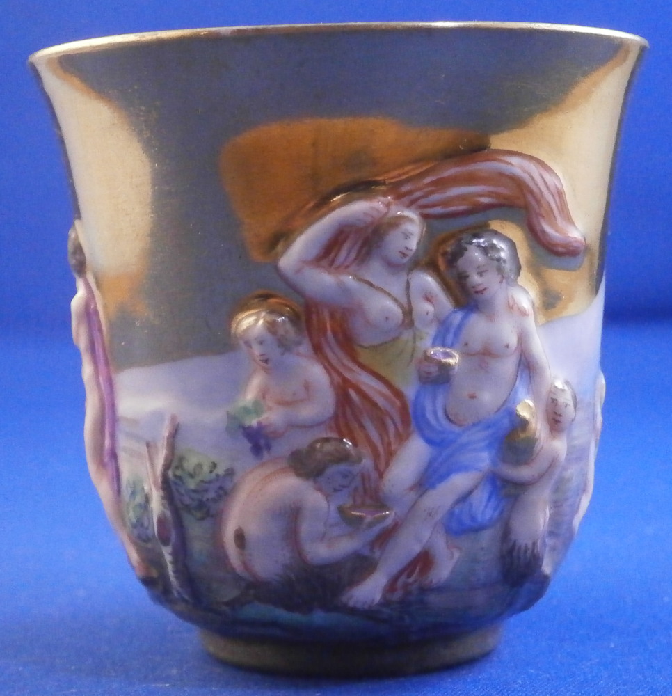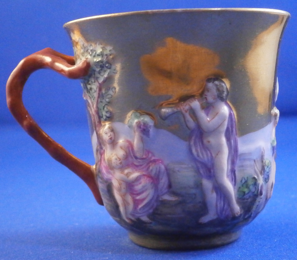 Doccia / Ginori Fully Gilded Relief Scene Cup & Saucer