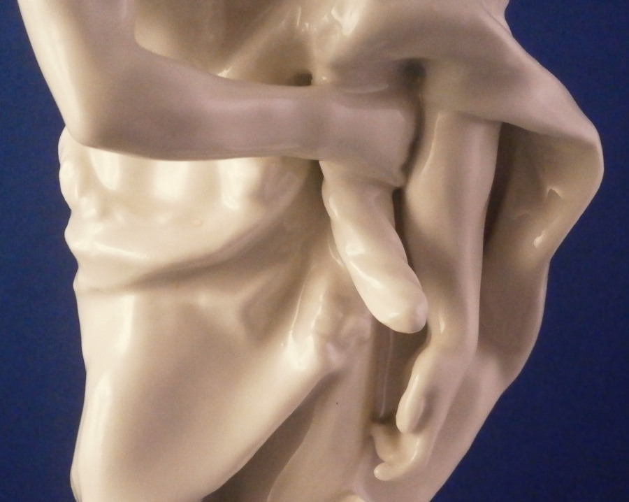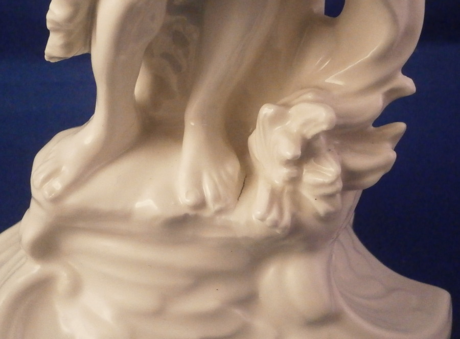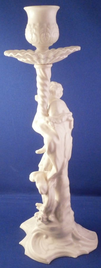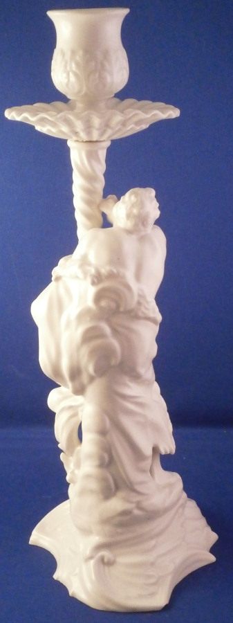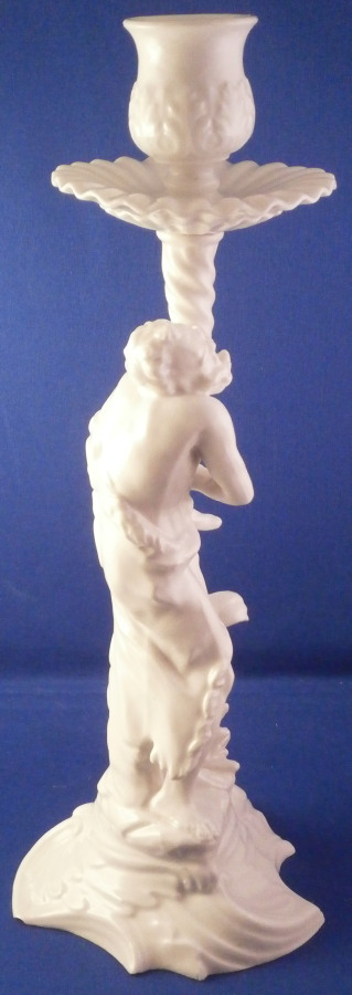 This is a nice figural candlestick made by Doccia / Richard Ginori in the later 19th century. It is one of a series of four depicting the four seasons. This one being winter. Too bad I only have one :( There is a bearded male figure holding up a horn of plenty looking item in his left hand which has the candleholder on top of it. He has a long coat draped over his back and a fire on the base by his side. The base is nicely shaped and quite typical for this maker in the 18th century when they were first produced! Finding them in the white is rare as they are usually painted in bright colors. I am quite partial to the white pieces as they go with any decor! The piece displays nicely and is in great condition with just a couple of small chips along the base edge that are not obvious at all and a firing crack next to his left foot plus a few tiny black firing spots from when it was made. The piece is marked underneath with the under glaze blue N under a crown mark as shown. The figure is quite heavy and 11.5 inches tall, 4.25 inches wide and 4.25 inches deep. Please email me for more information or other pictures.