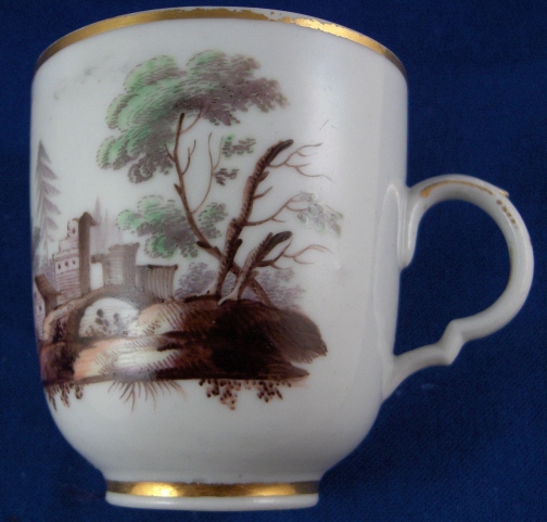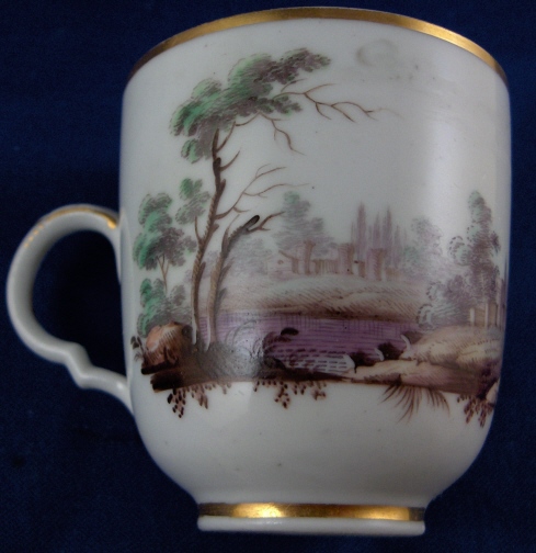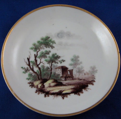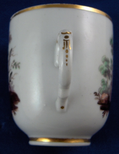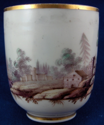 This is a great cup and saucer made by Doccia in the 18th century. An great example that is superbly handpainted with a polychrome scene on the cup and on the saucer with a gold trim to the rims and the handle of the cup. Typical handle shape on the cup that is very nice! The cup is in perfect condition with a tiny bit of gold wear and the saucer has a small chip to the edge as shown. Neither piece is marked which is quite normal for Doccia of this period. The cup is 2.75 inches tall and 2.5 inches in diameter. The saucer is just under 1 inch tall and 4.875 inches in diameter. Please email me for more information or other pictures.