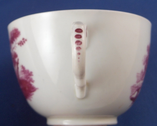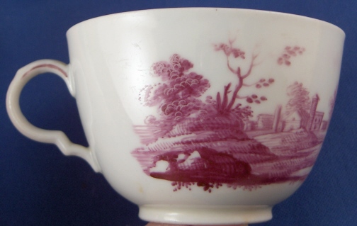 This is a cup and saucer made by Doccia in the 18th century.Both pieces are handpainted nicely with a puce landscape scene that is quite charming. Typical handle shape on the cup with a bit of puce highlights to it. Good detail to the scenes! The set is in perfect condition with some minor manufacturing flaws like black specs, etc. normal to the 18th century goodies! The cup is 1.875 inches tall and just under 3 inches in diameter. The saucer is 1 inch tall and has a diameter of 5 inches. The cup is unmarked which is pretty normal for Doccia / Ginori porcelain pieces but the saucer has the rare impressed star mark underneath. Please email me for more information or other pictures.