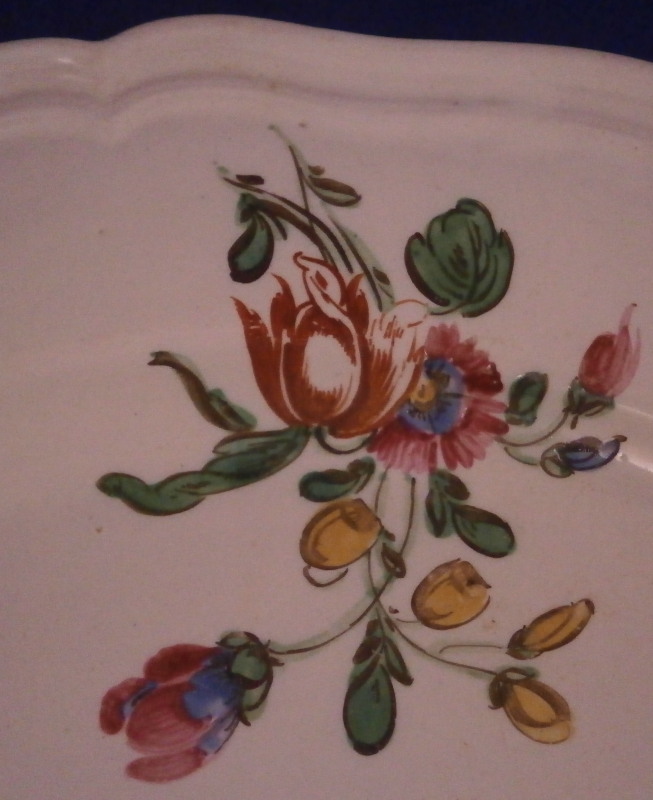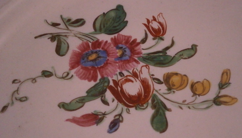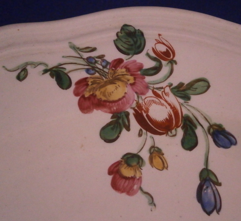 This is a nice plate made by Doccia / Ginori in about 1770. It is hand painted with three nice sized floral arrangements as well as some smaller single flowers. Nicely done in their typical style of the period and the plate has a relief design along the edge which makes it quite elegant. The plate is made with a tin glaze to cover the not so white porcelain paste of the time. This was used around 1770. The plate is in perfect condition with almost no evidence of use which is rare. It is marked only with a green number 10 as shown but that is normal during this period. The piece is 1 inch tall and 9.125 inches in diameter. Please email me for more information or other pictures.