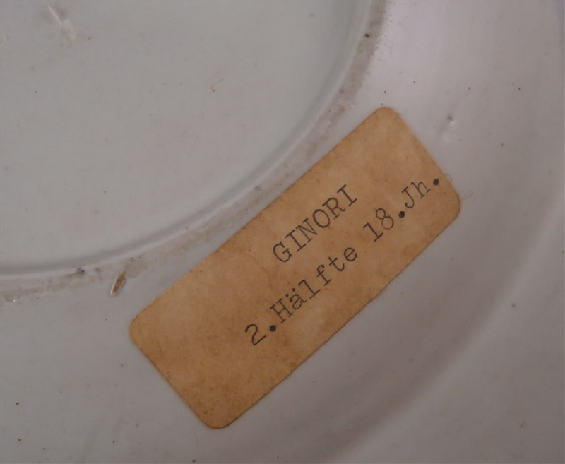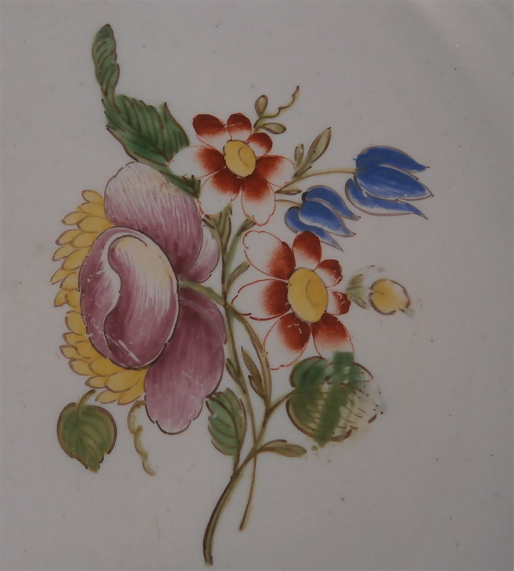 This is a nice plate made by Doccia / Ginori in about 1770. It is handpainted with one larger floral arrangement, two smaller one and three single flowers that are really well done and in their typical style. The rim has a nice shape and a relief design to it as well. The plate is made with a tin glaze to cover the not so white porcelain paste of the time. This was used around 1770. The plate is in perfect condition with very little wear. It is unmarked which is the norm but definitely made by them during this period. An old German colelction sticker stating the same thing underneath. The piece is 1.25 inches tall and 9.25 inches in diameter. Please email me for more information or other pictures.