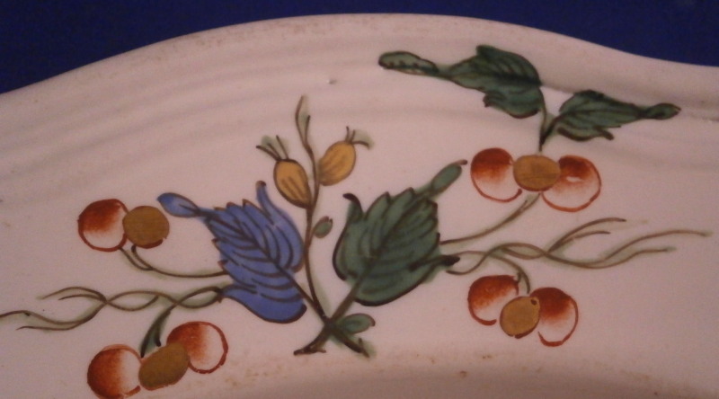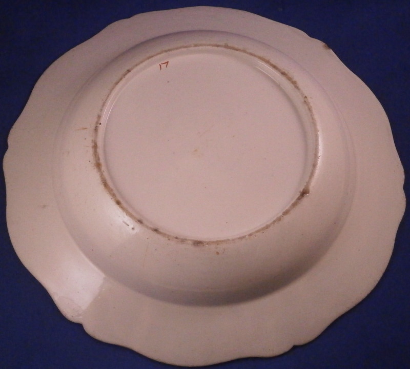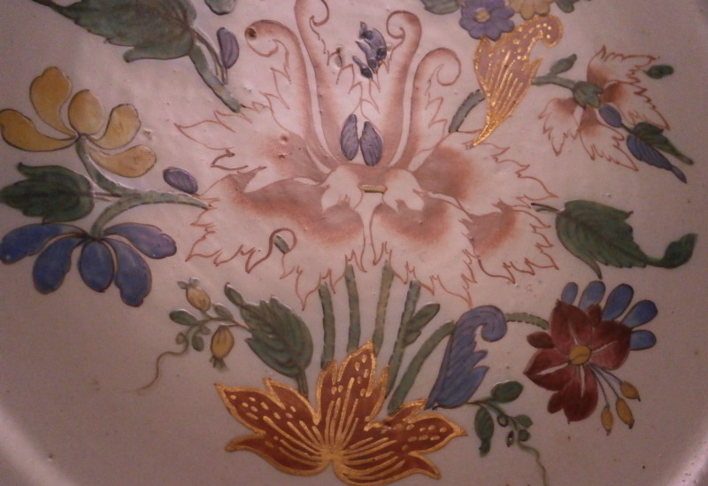 This is a deep plate / soup bowl made by Doccia / Ginori in about 1770. It is hand painted with a superb floral design called Ischia or Tulipano in the center and six smaller floral arrangements on the rim. Nice rim design as well. The plate is very typical for Doccia around this time period and the design is quite famous. It is made with a tin glaze to cover the not so white porcelain paste of the time. This was used around 1770. The plate is in good condition with a little wear and a small glaze chip to the underside edge as shown. There is a firing flaw along the rim adge whch has been partially covered with a leaf. It is marked underneath with a red number 17 which is fairly typical for them at the time. The plate is 1.5 inches tall and 9.25 inches in diameter. Please email me for more information or other pictures.